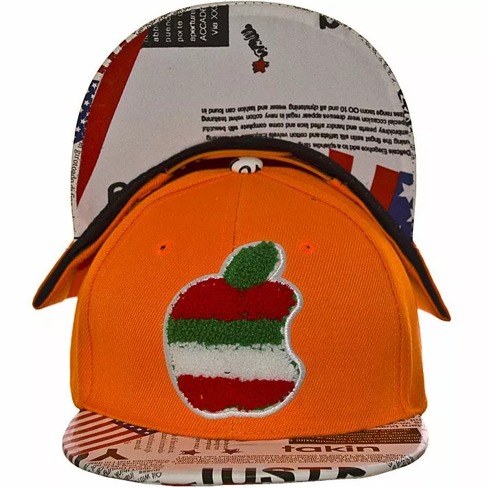 Кепка, которая имеет яркую нашивку в виде яблока, подойдет для