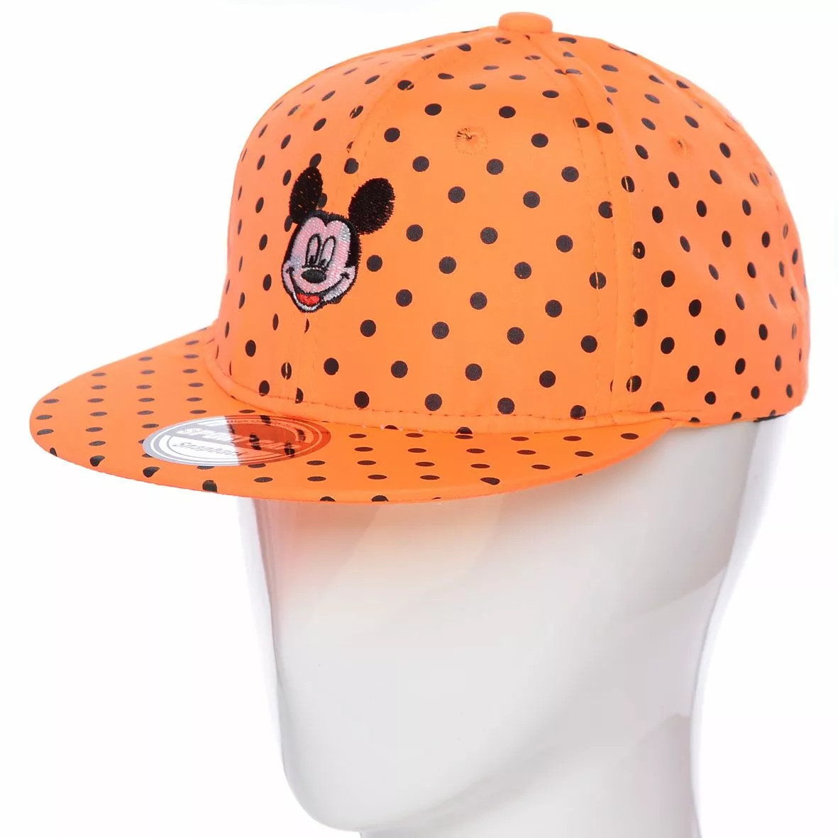 Яркая кепка в горошек с прямым козырьком, декорирована милым