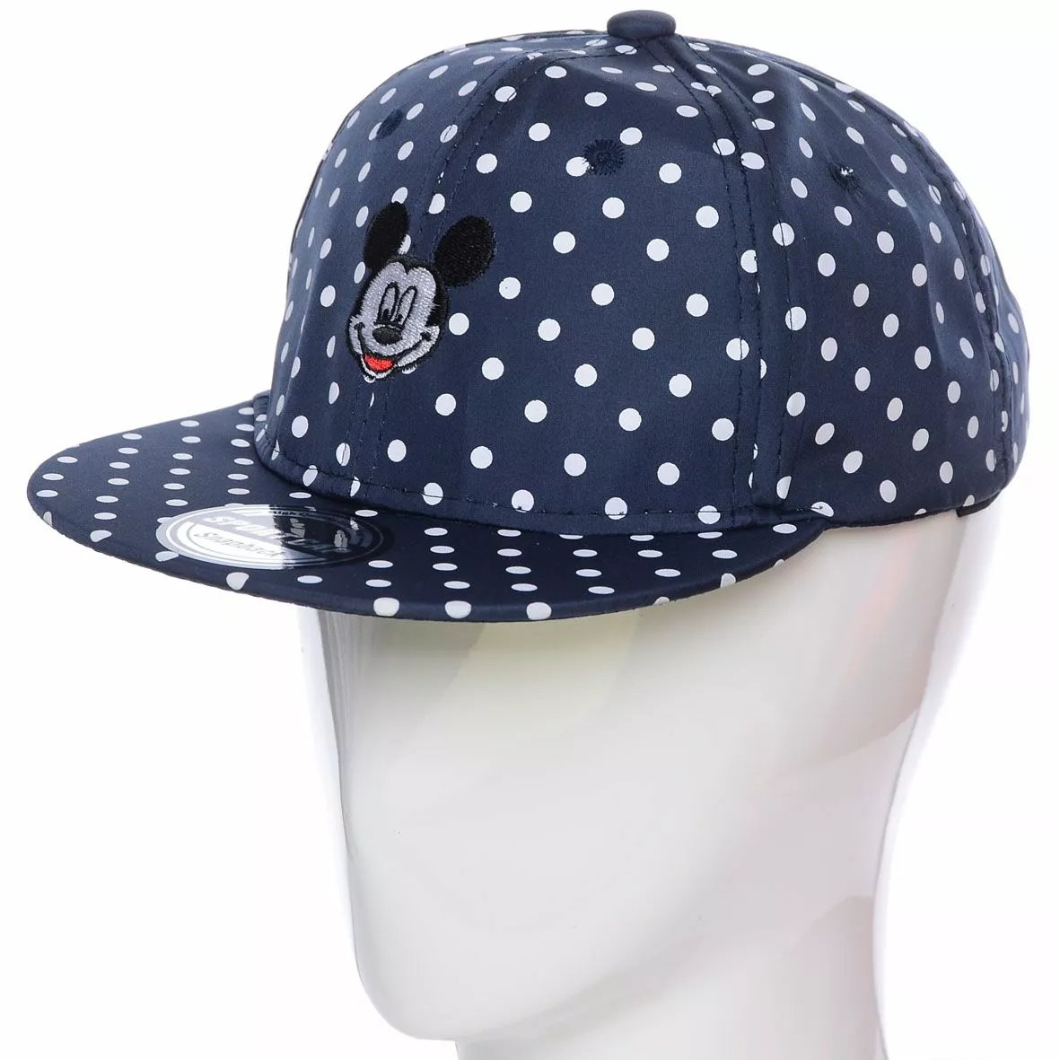Яркая кепка в горошек с прямым козырьком, декорирована милым