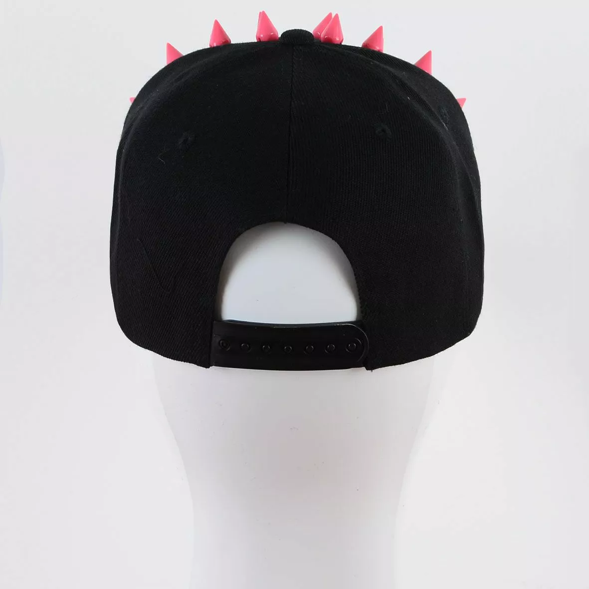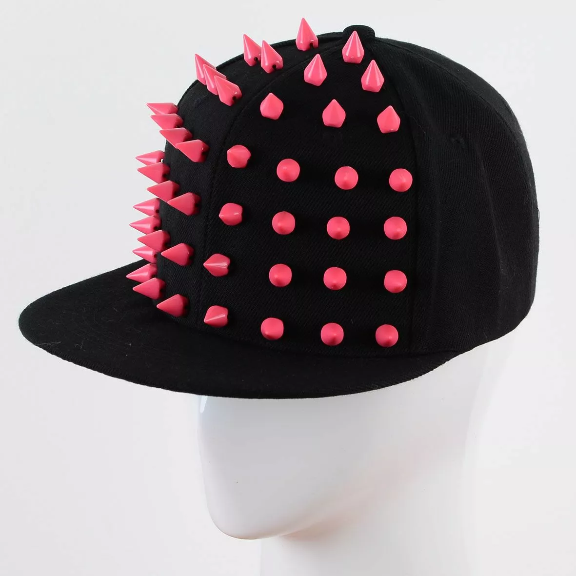 Кепка с прямым козырьком черного цвета с шипами на лобовой части.