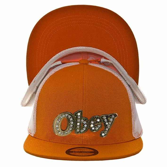 расположена надпись OBEY, декорирован стразами. Изделие
