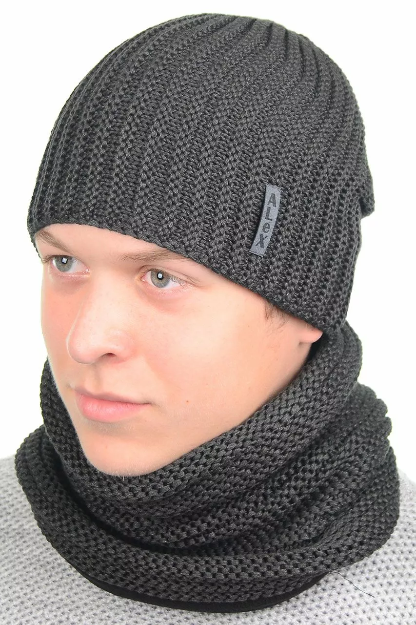 Однотонный мужской набор - состоит из хомута и стильной шапки.