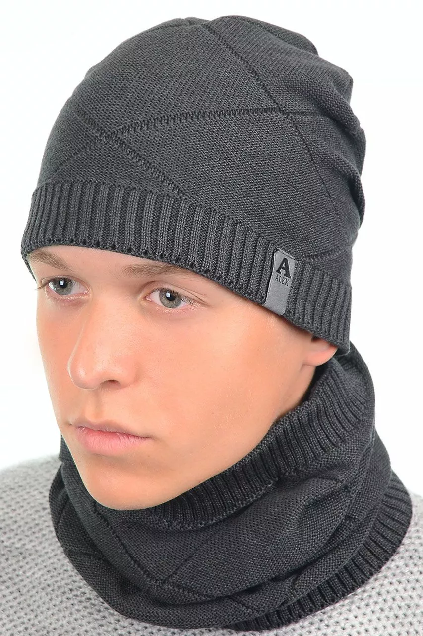 Однотонный мужской набор - состоит из хомута и стильной шапки.