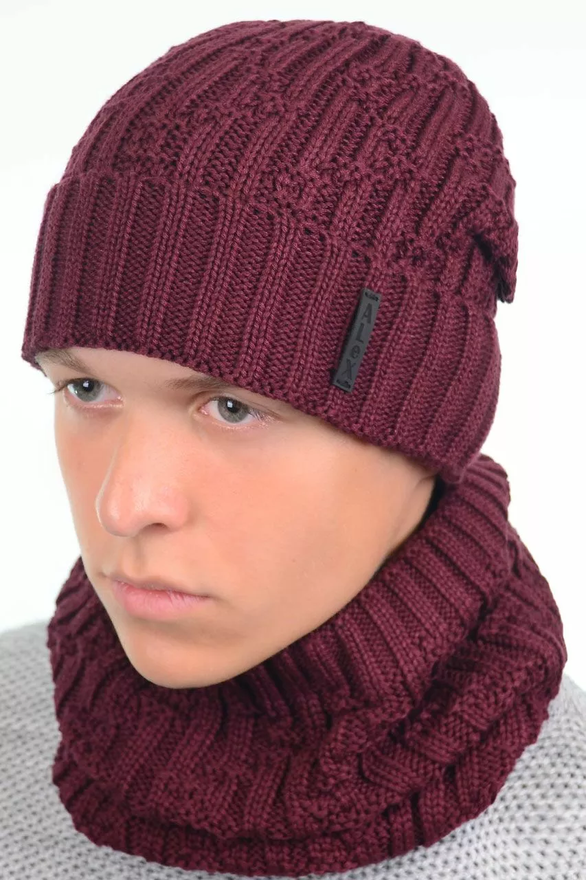 Однотонный мужской набор - состоит из хомута и стильной шапки.