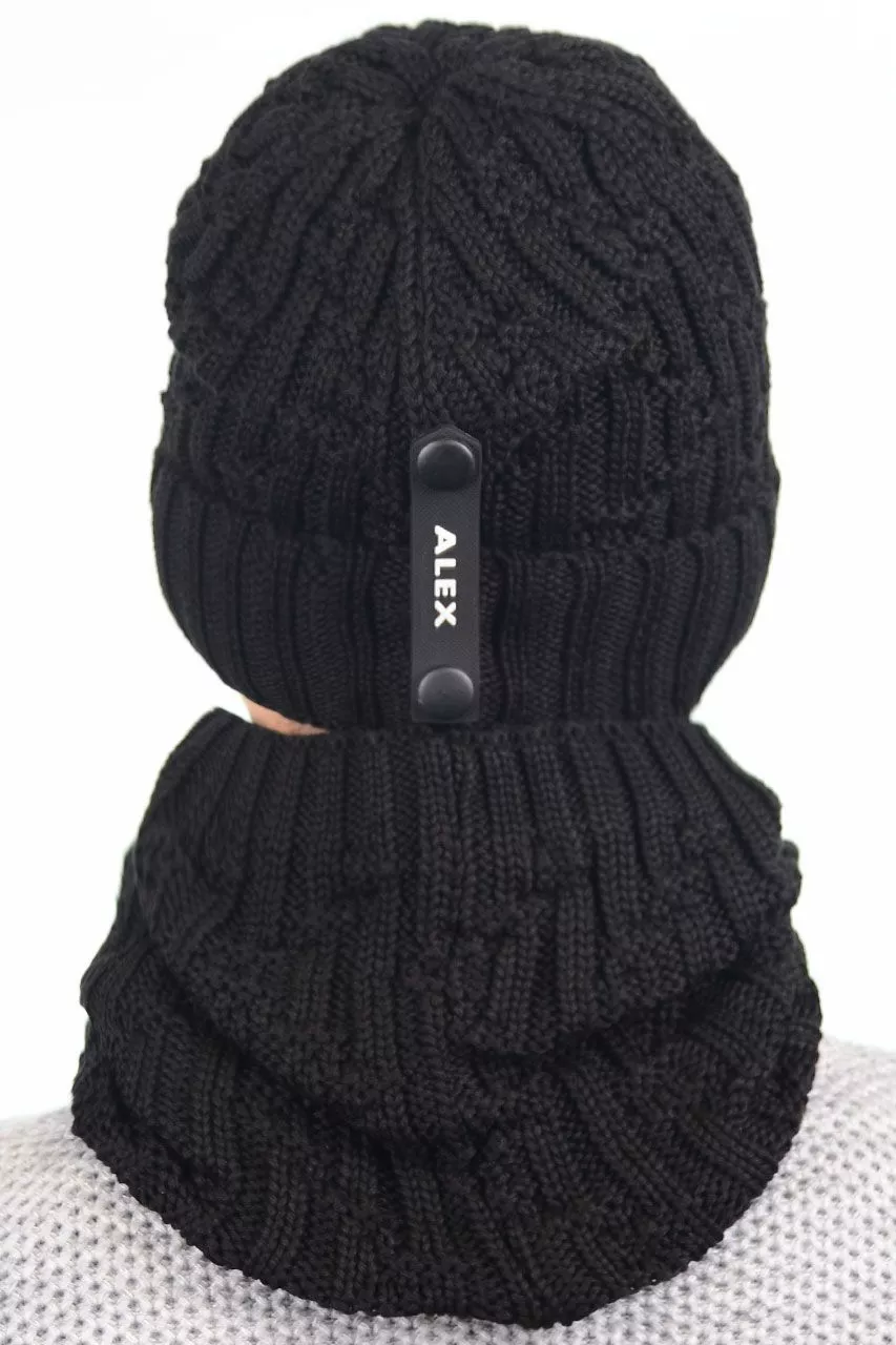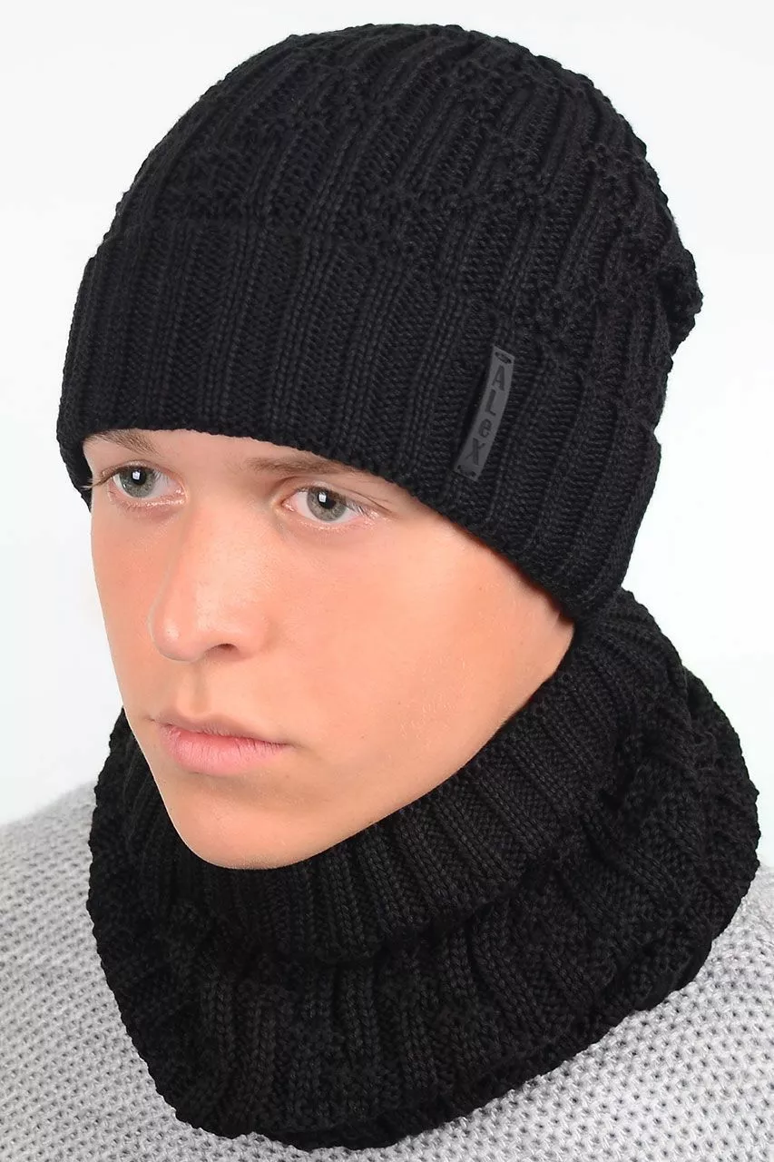 Однотонный мужской набор - состоит из хомута и стильной шапки.