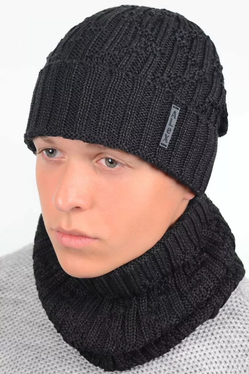Однотонный мужской набор - состоит из хомута и стильной шапки.