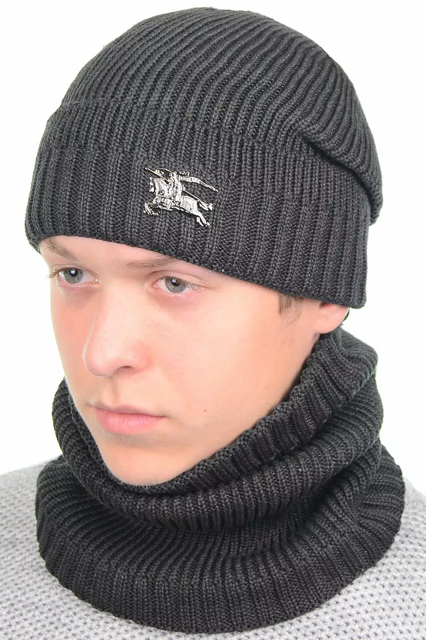 Однотонный мужской набор - состоит из хомута и стильной шапки.