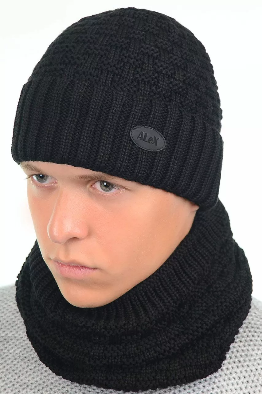 Однотонный мужской набор - состоит из хомута и стильной шапки.