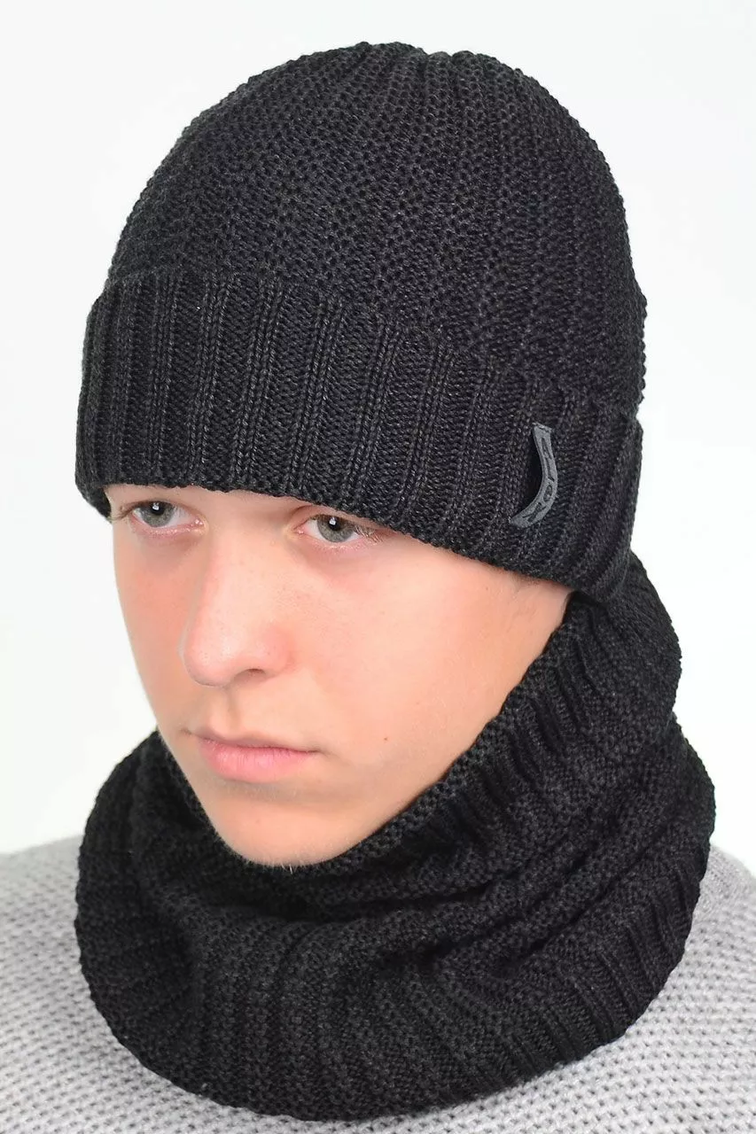 Однотонный мужской набор - состоит из хомута и стильной шапки.