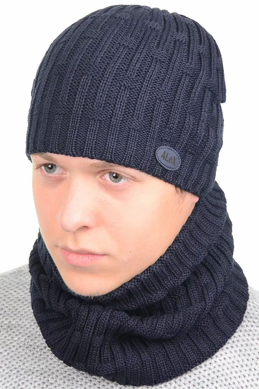 Однотонный мужской набор - состоит из хомута и стильной шапки.