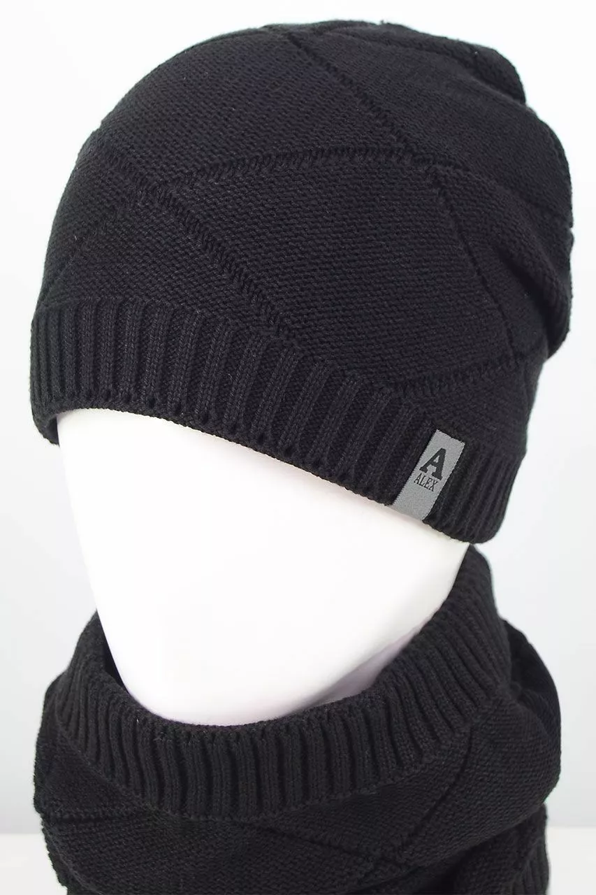 Однотонный мужской набор - состоит из хомута и стильной шапки.