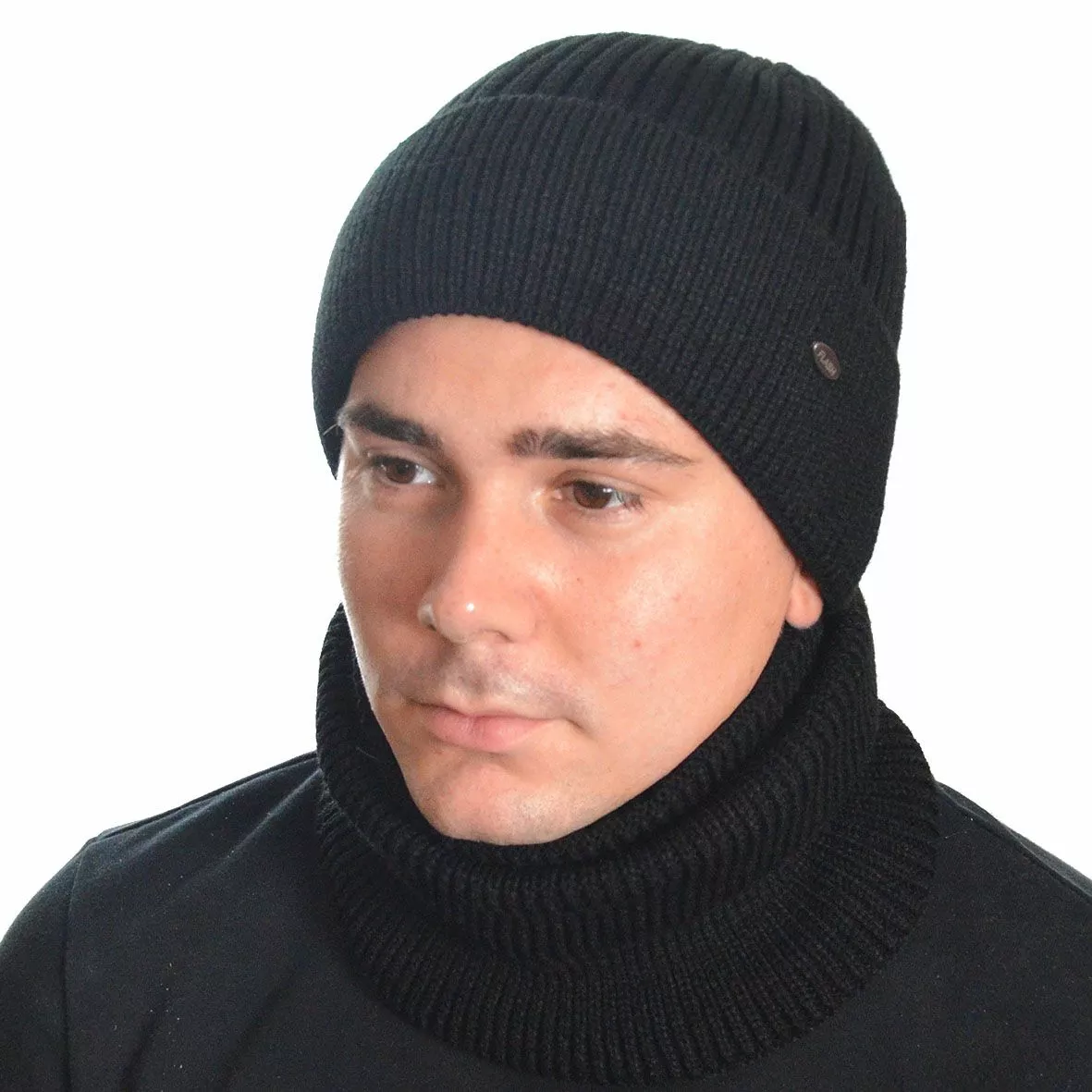 Однотонный мужской набор - состоит из хомута и стильной шапки.