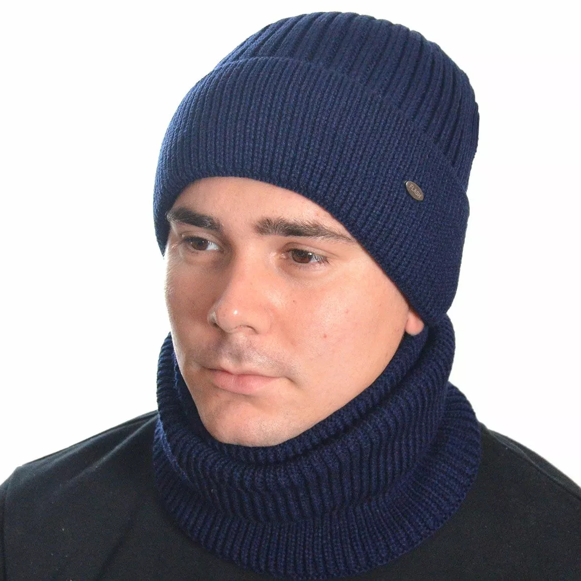 Однотонный мужской набор - состоит из хомута и стильной шапки.