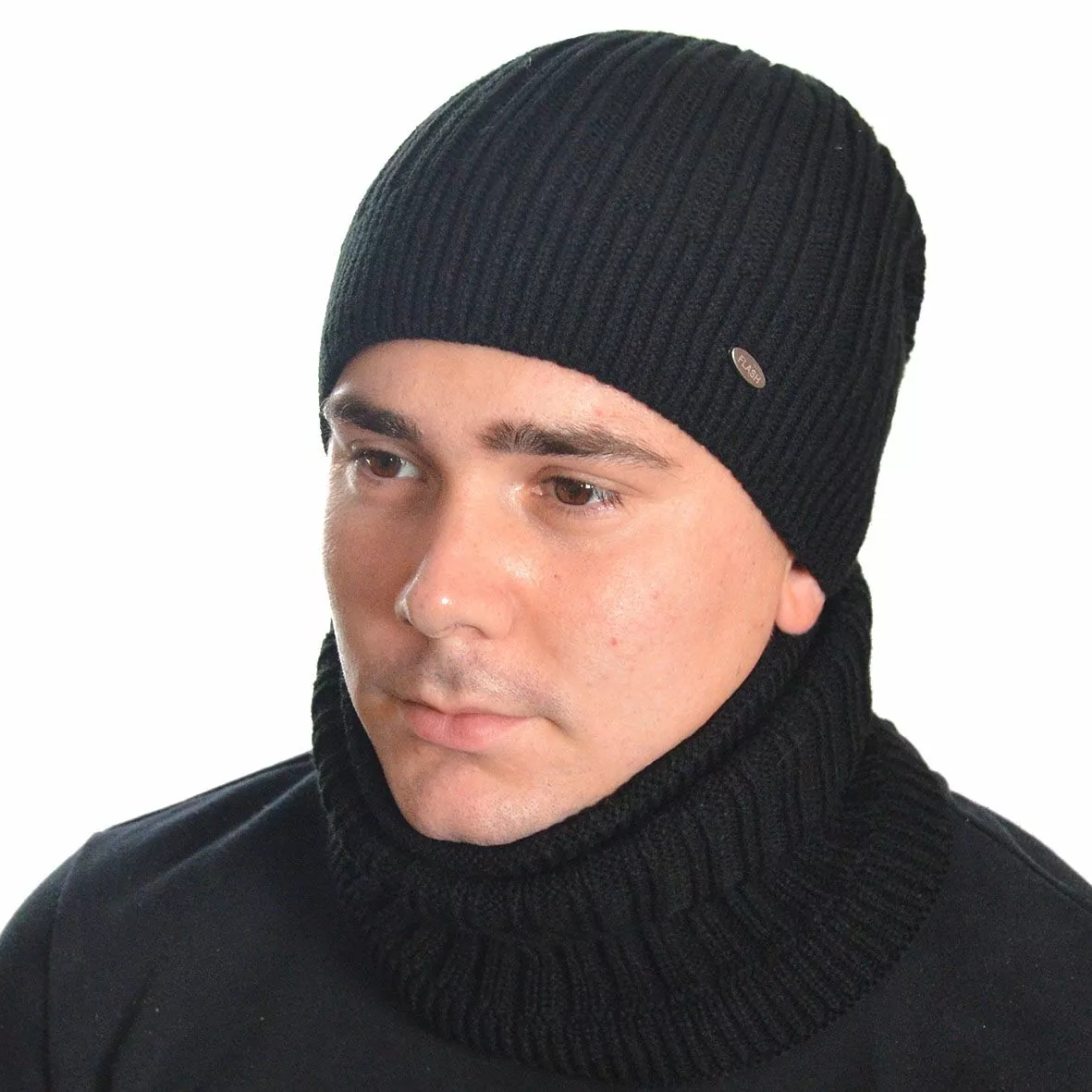 Однотонный мужской набор - состоит из хомута и стильной шапки.
