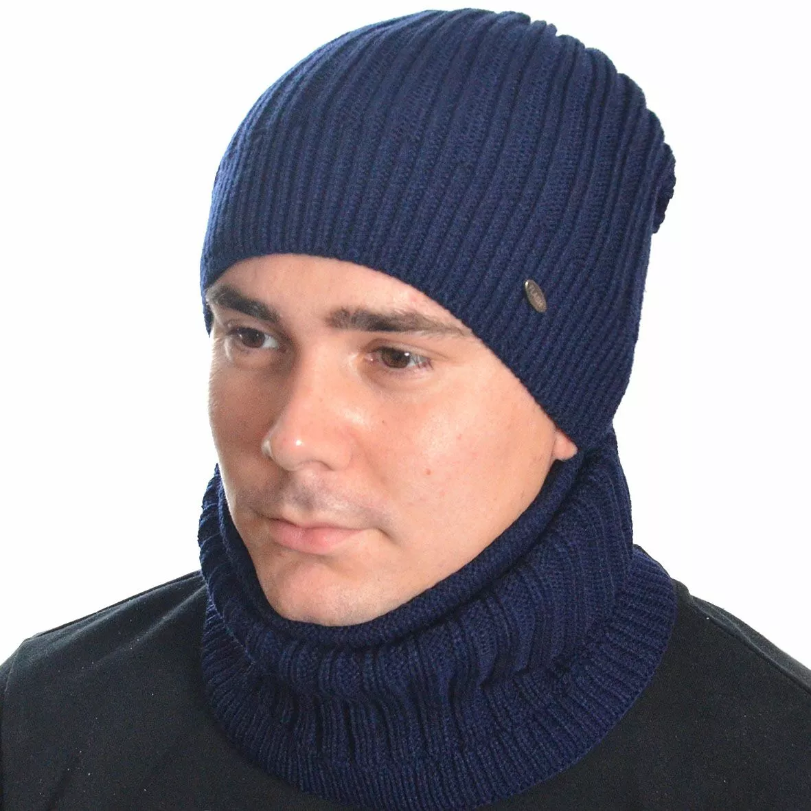 Однотонный мужской набор - состоит из хомута и стильной шапки.