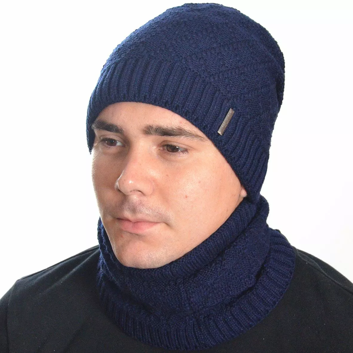 Однотонный мужской набор - состоит из хомута и стильной шапки.