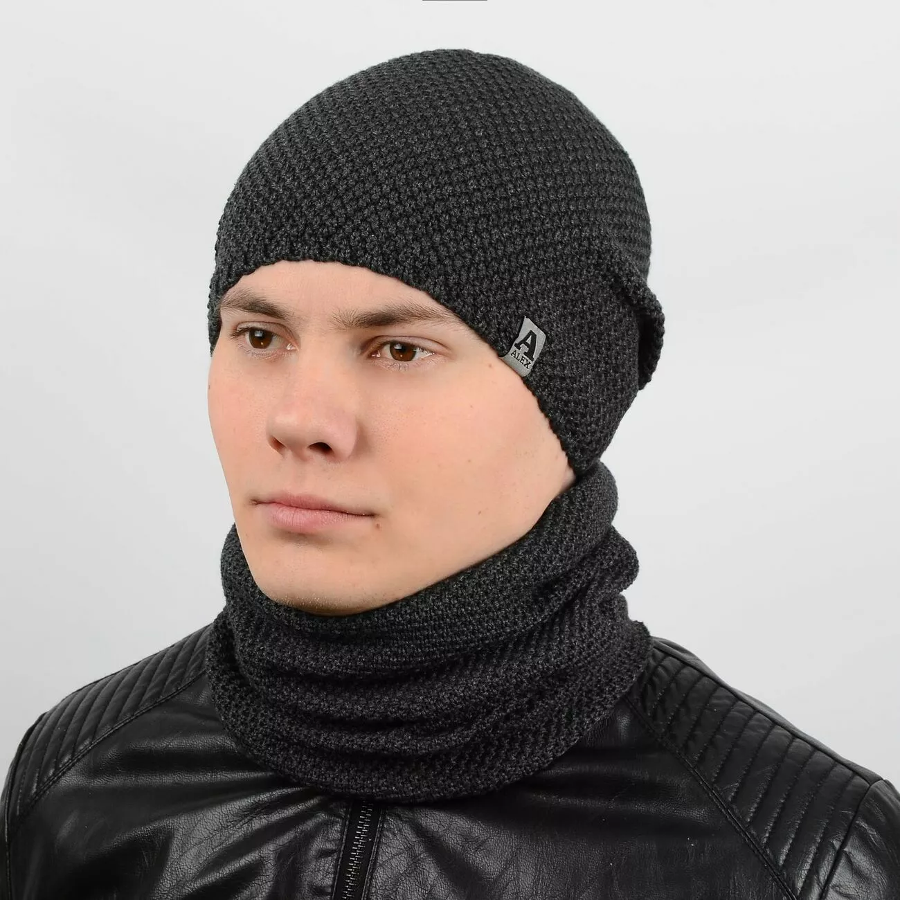 Стильный мужской набор - состоит из шарфа-хомута и теплой шапки.