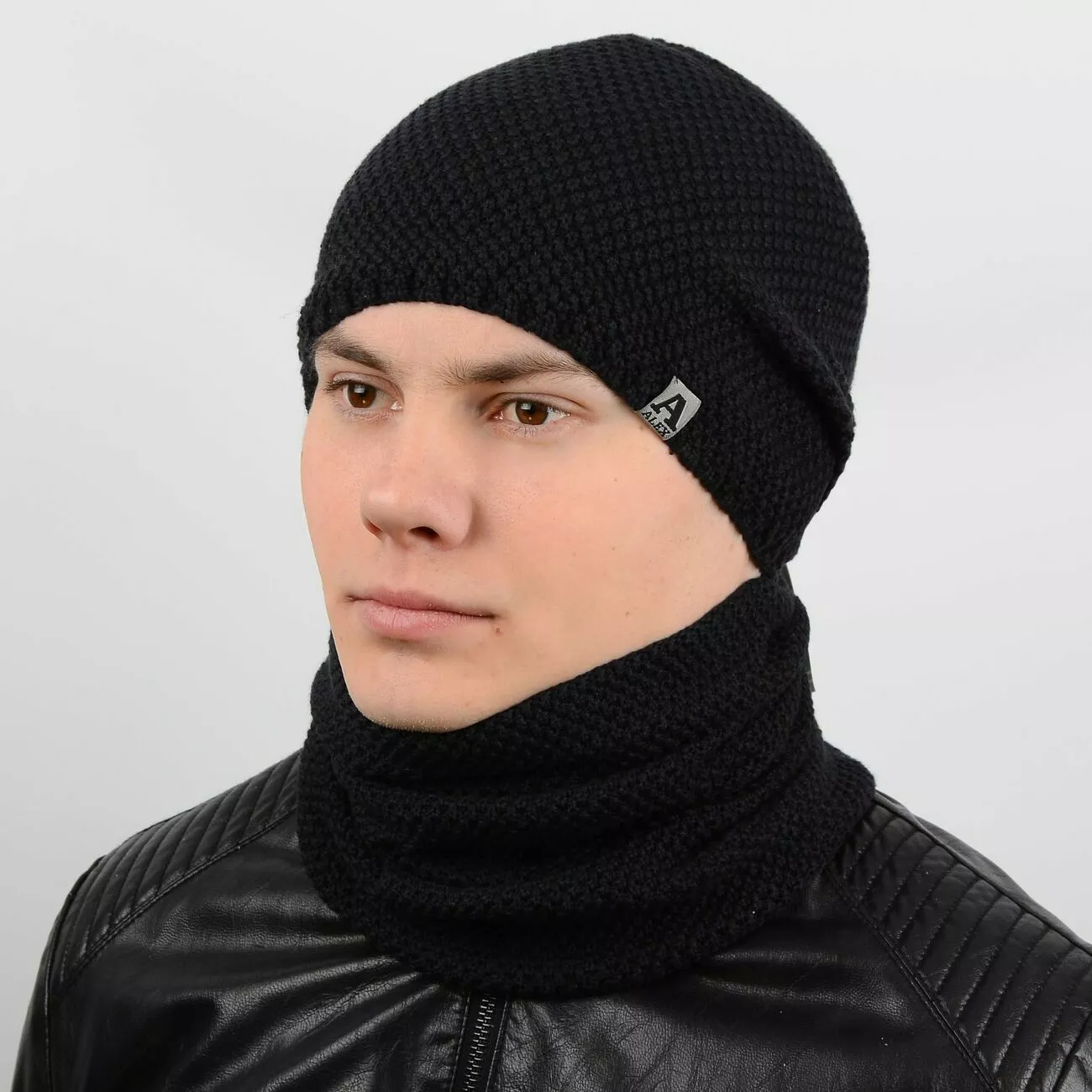 Стильный мужской набор - состоит из шарфа-хомута и теплой шапки.