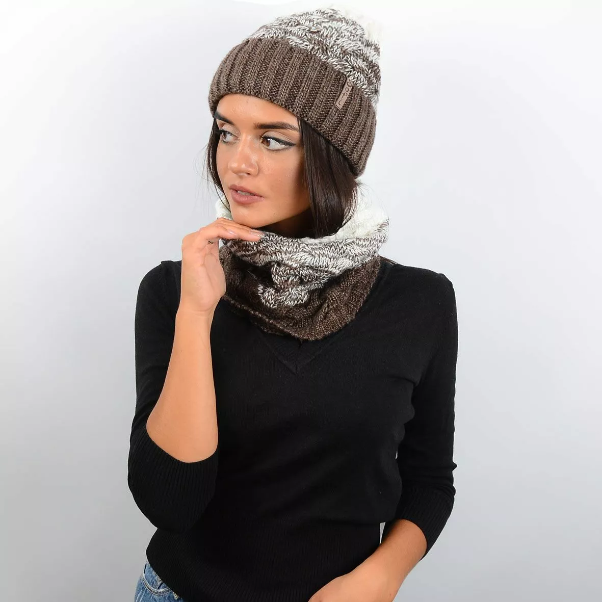 вязкой, головной убор имеет отворот. Эти аксессуары не только