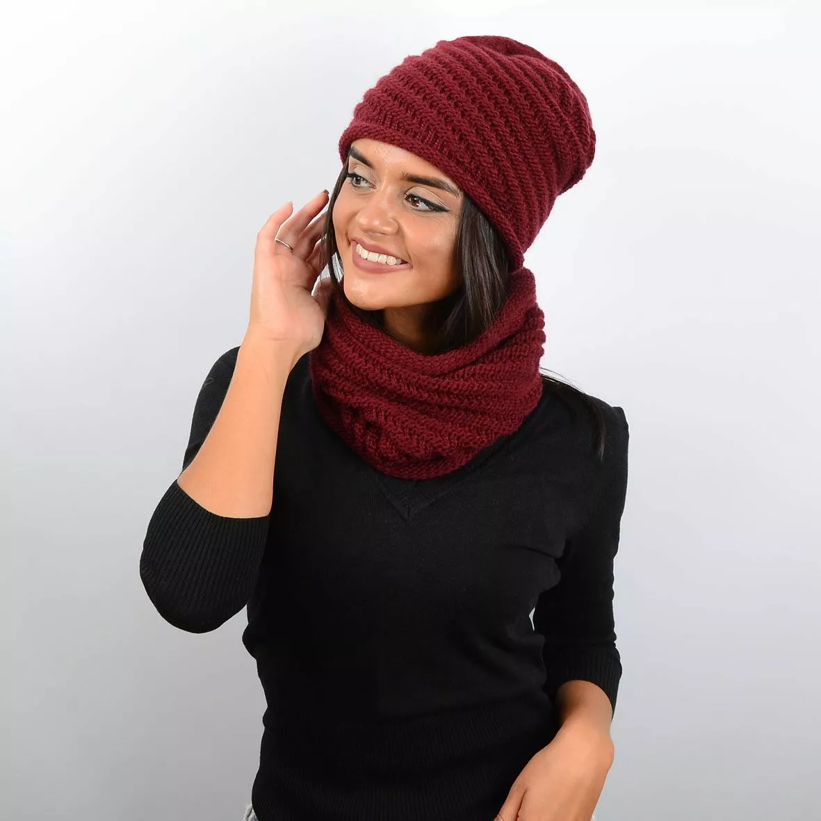 Молодежный вязаный набор, который состоит из шапки и хомута-трубы -