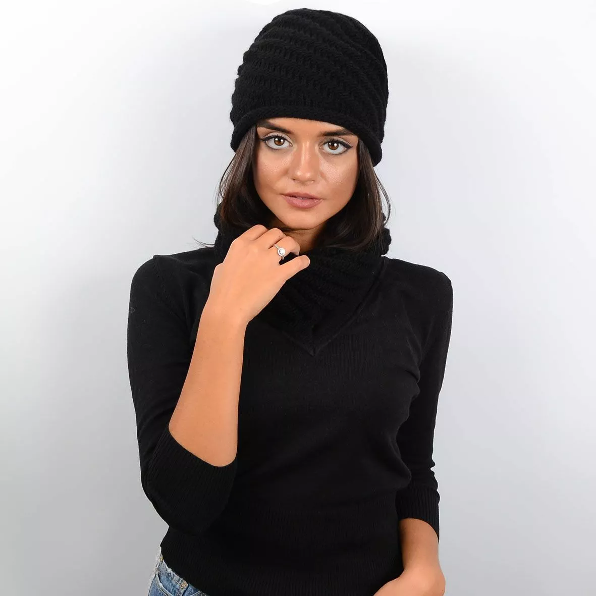 Молодежный вязаный набор, который состоит из шапки и хомута-трубы -