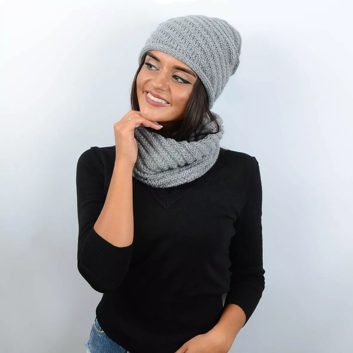 Молодежный вязаный набор, который состоит из шапки и хомута-трубы -