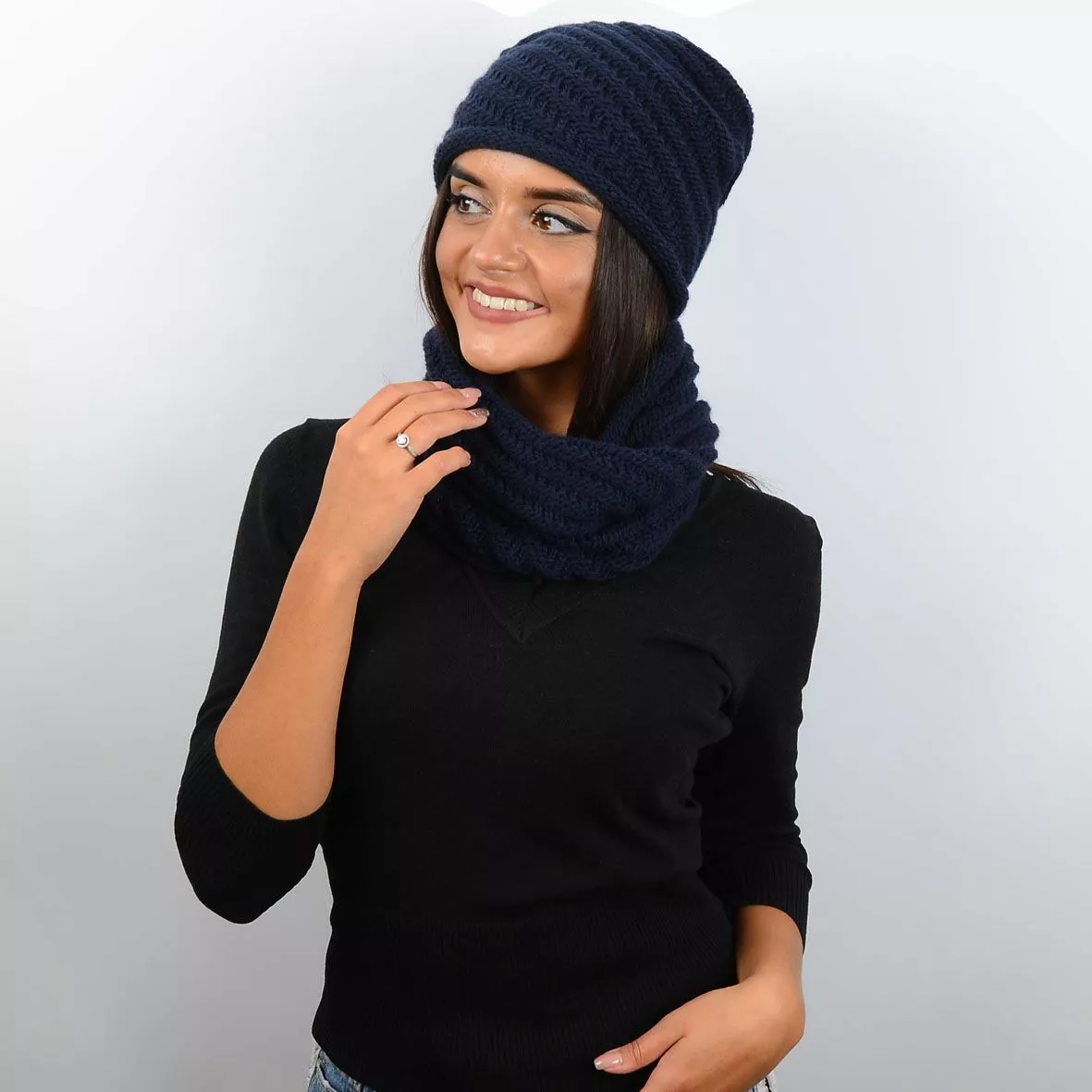 Молодежный вязаный набор, который состоит из шапки и хомута-трубы -