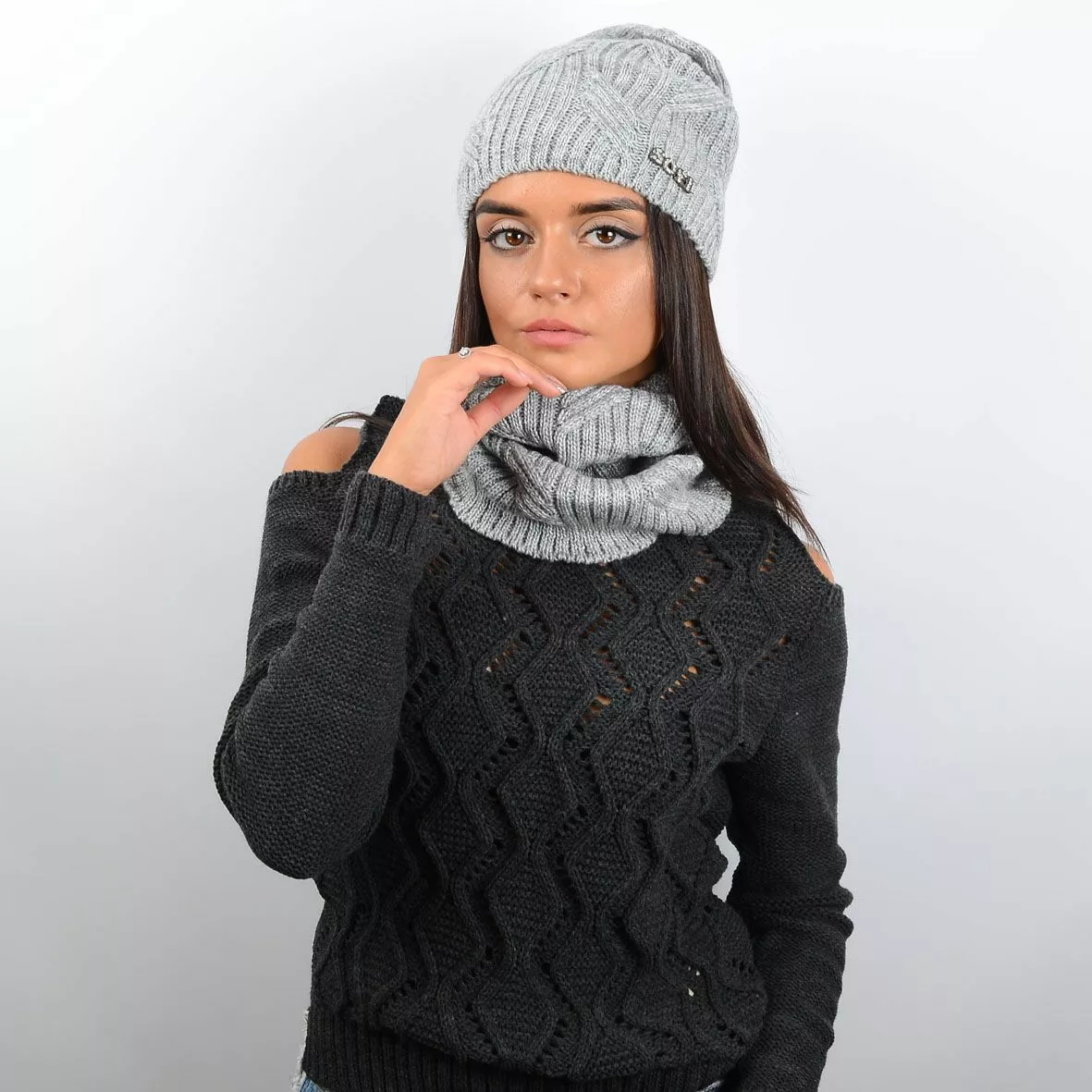 Стильный вязаный набор, который состоит из шапки и хомута-трубы -