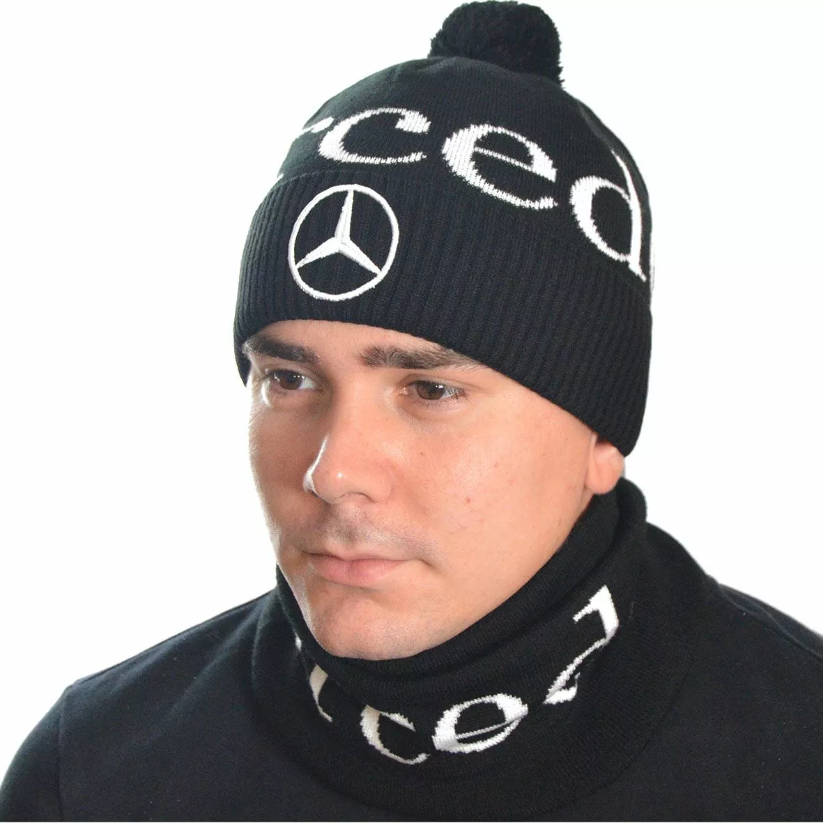 Однотонный мужской набор - состоит из хомута и стильной шапки.