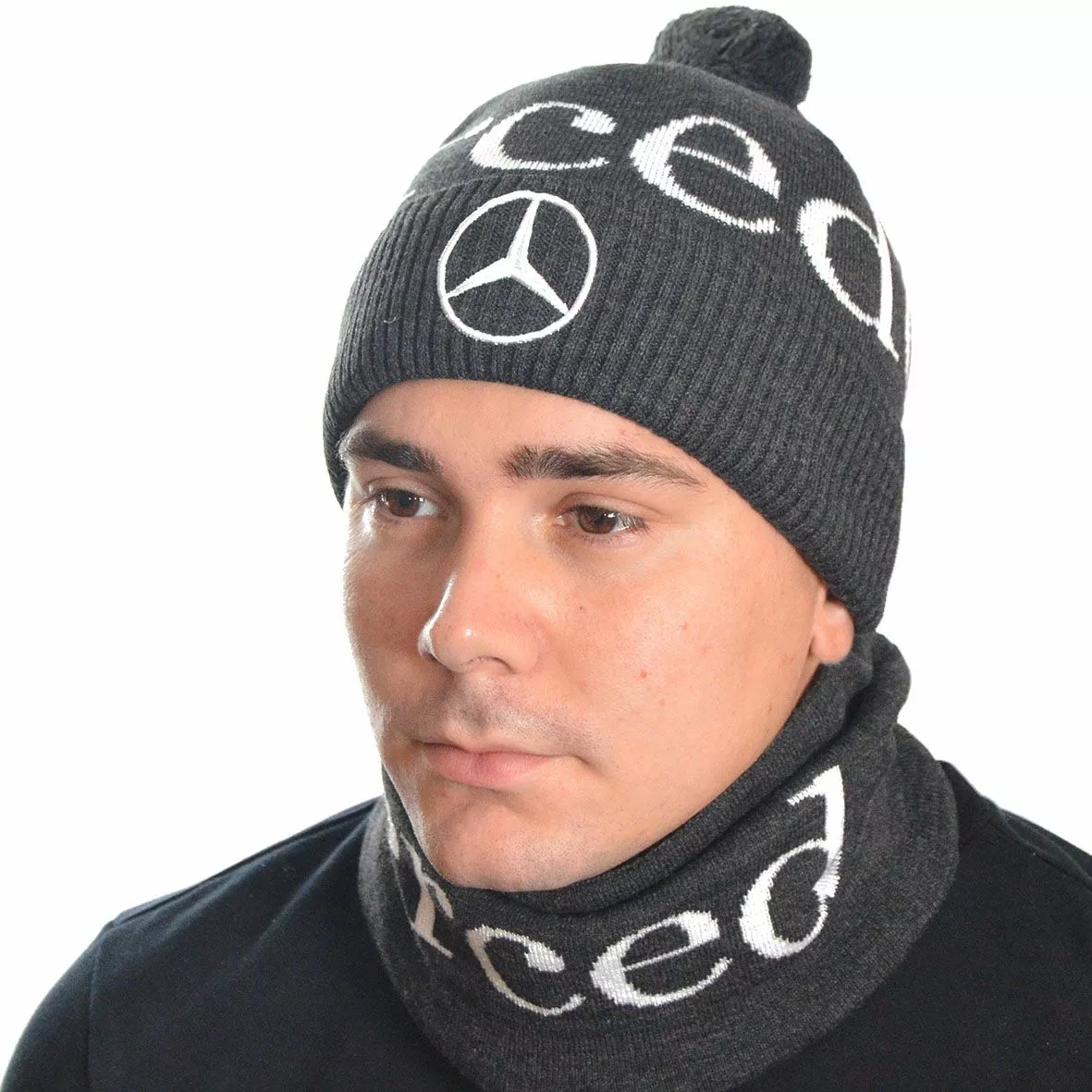 Однотонный мужской набор - состоит из хомута и стильной шапки.
