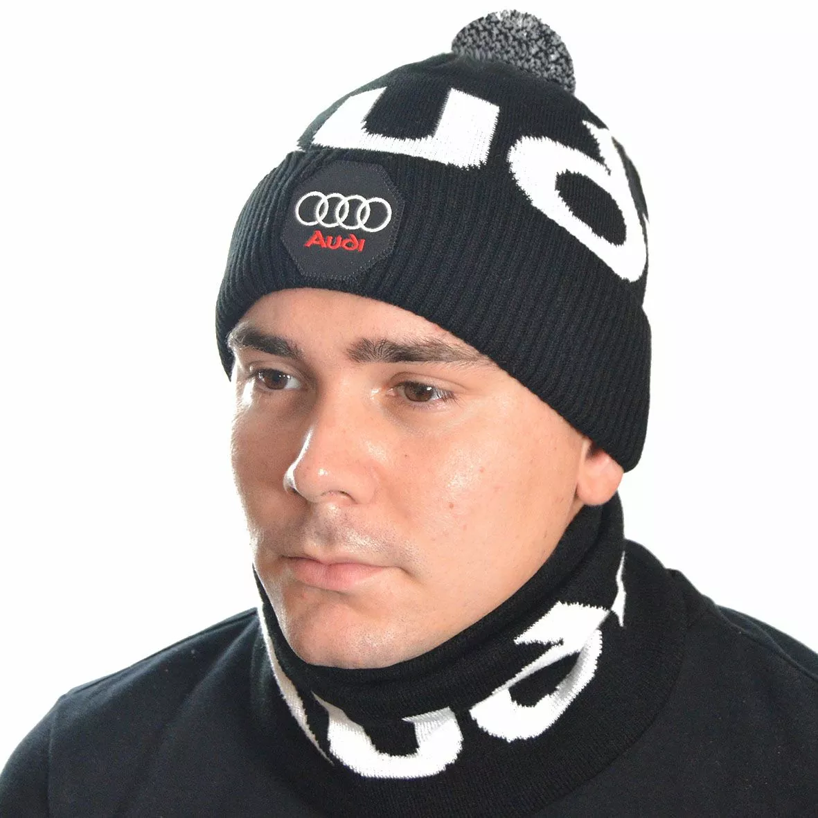 Однотонный мужской набор - состоит из хомута и стильной шапки.