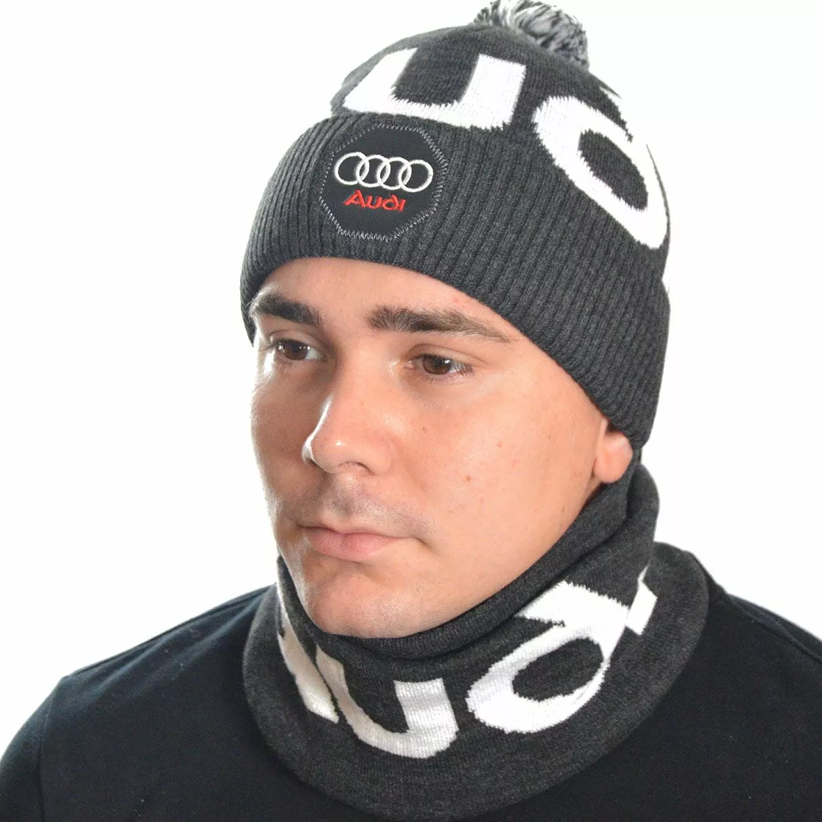 Однотонный мужской набор - состоит из хомута и стильной шапки.