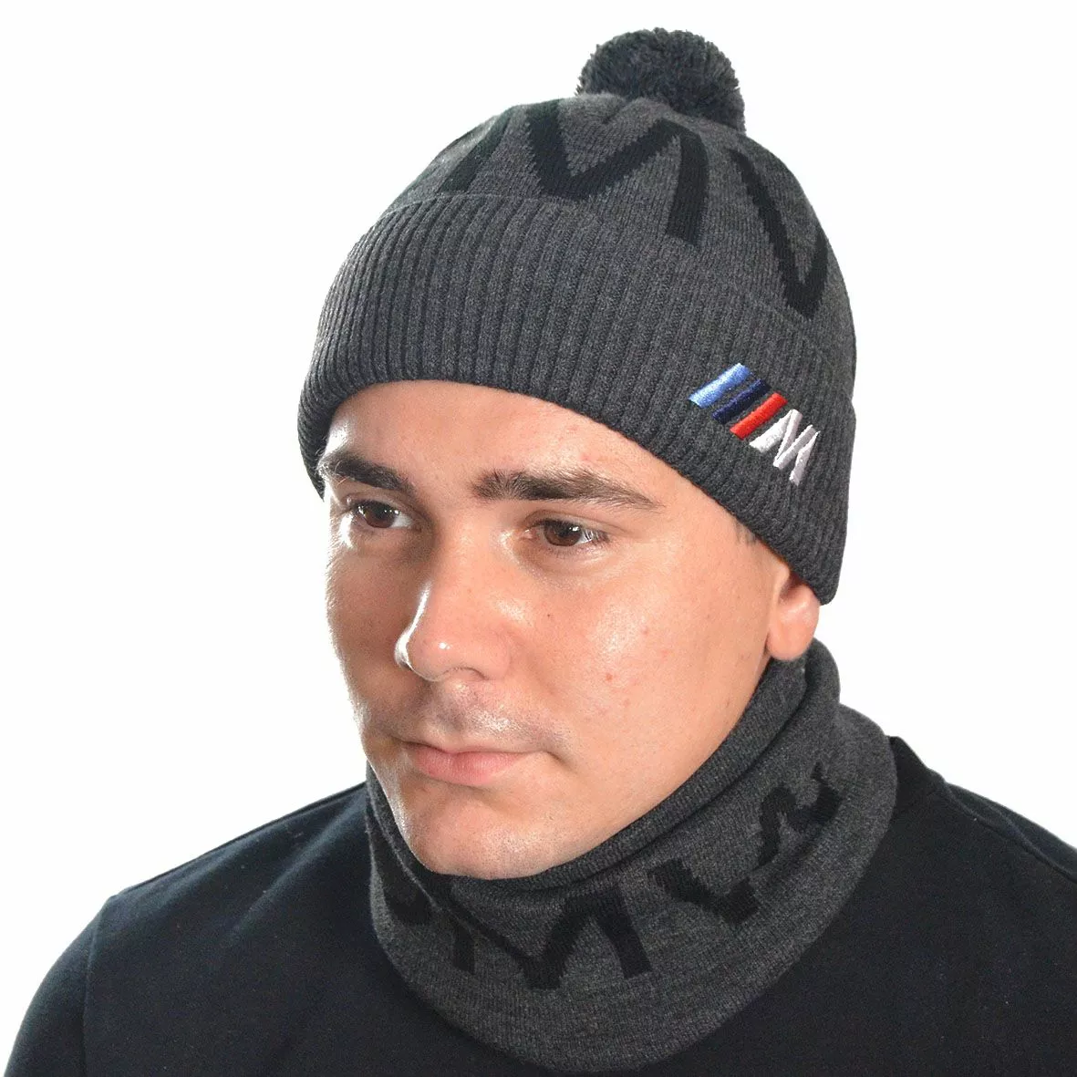 Однотонный мужской набор - состоит из хомута и стильной шапки.