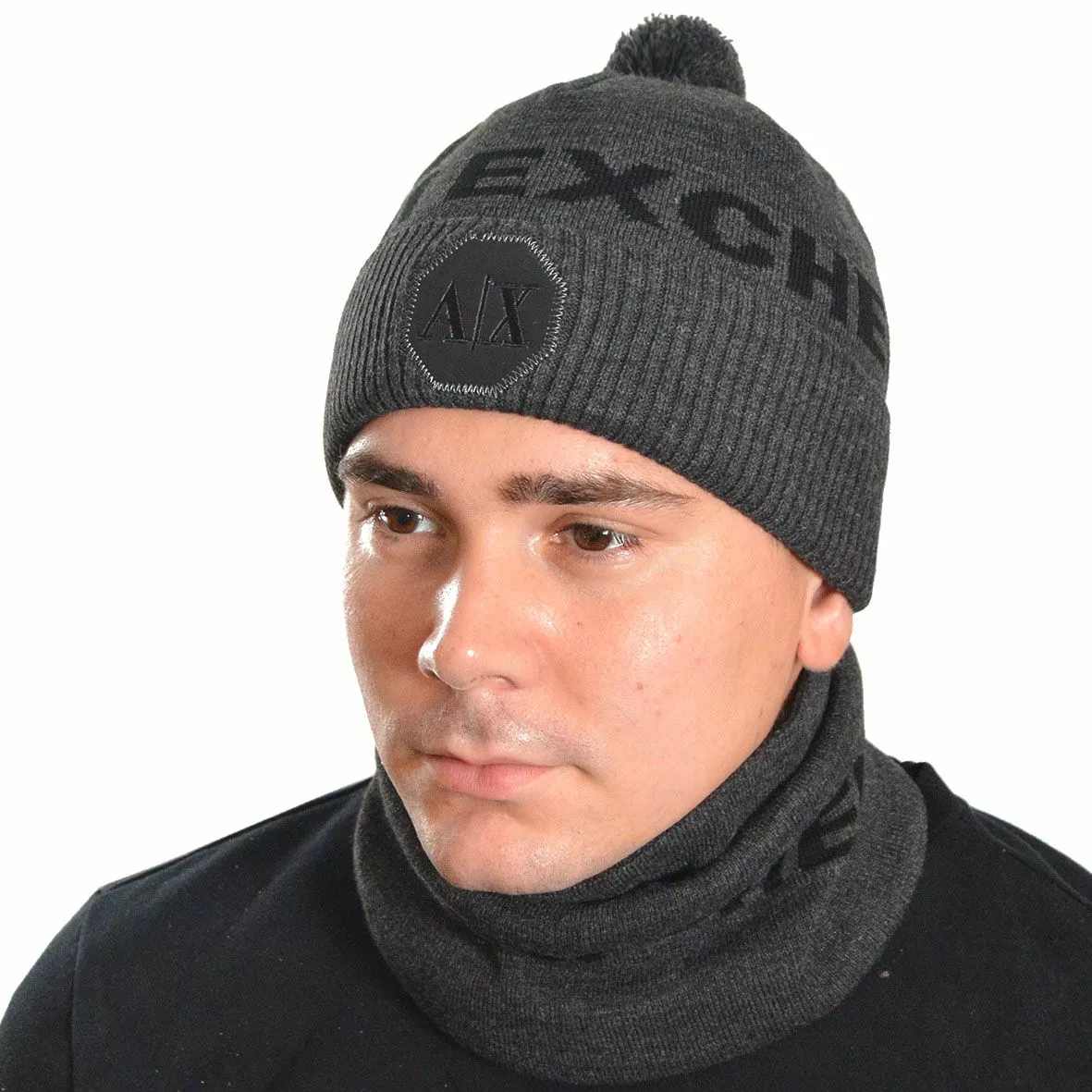 Однотонный мужской набор - состоит из хомута и стильной шапки.