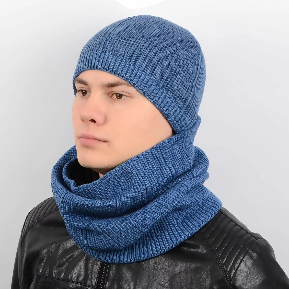 Однотонный мужской набор - состоит из шарфа-хомута и стильной