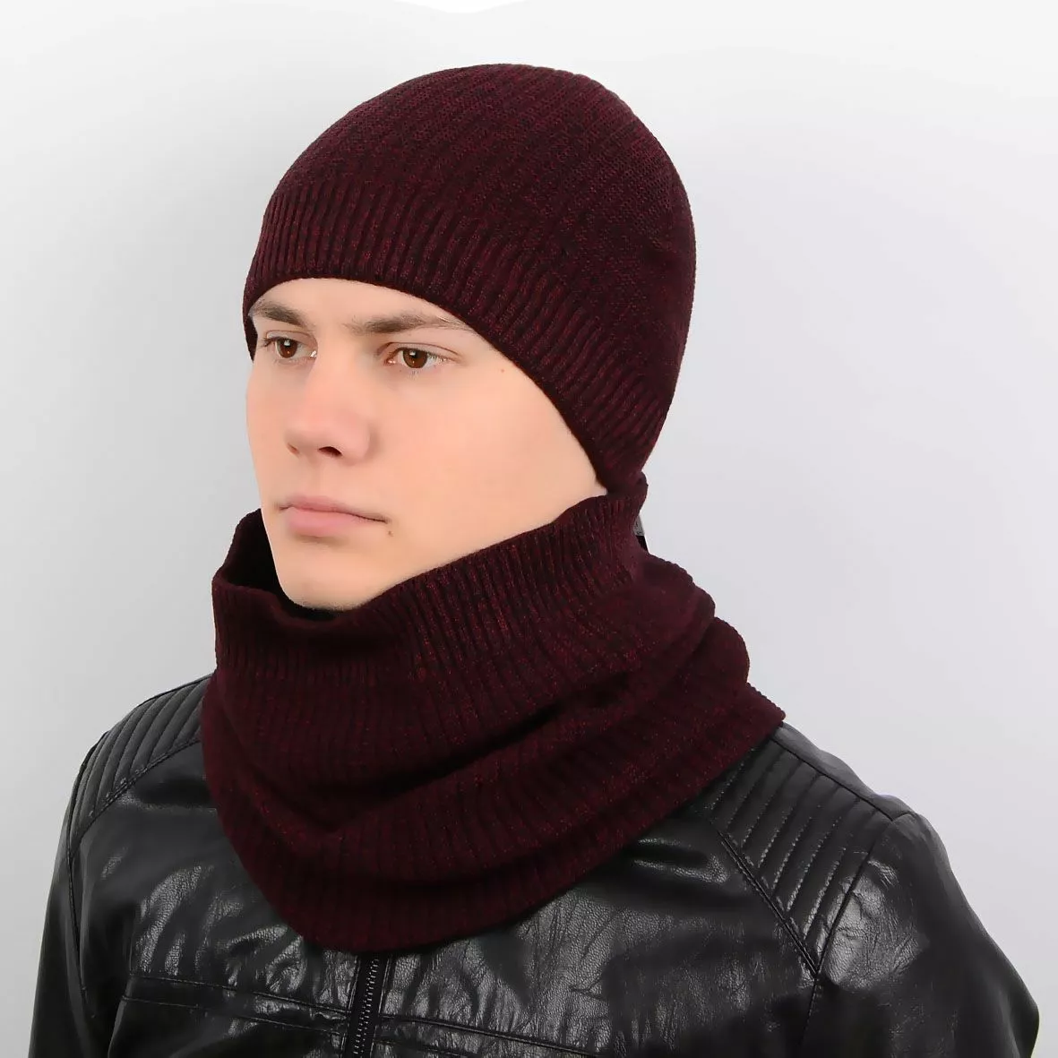 Стильный мужской набор - состоит из шарфа-хомута и теплой шапки.