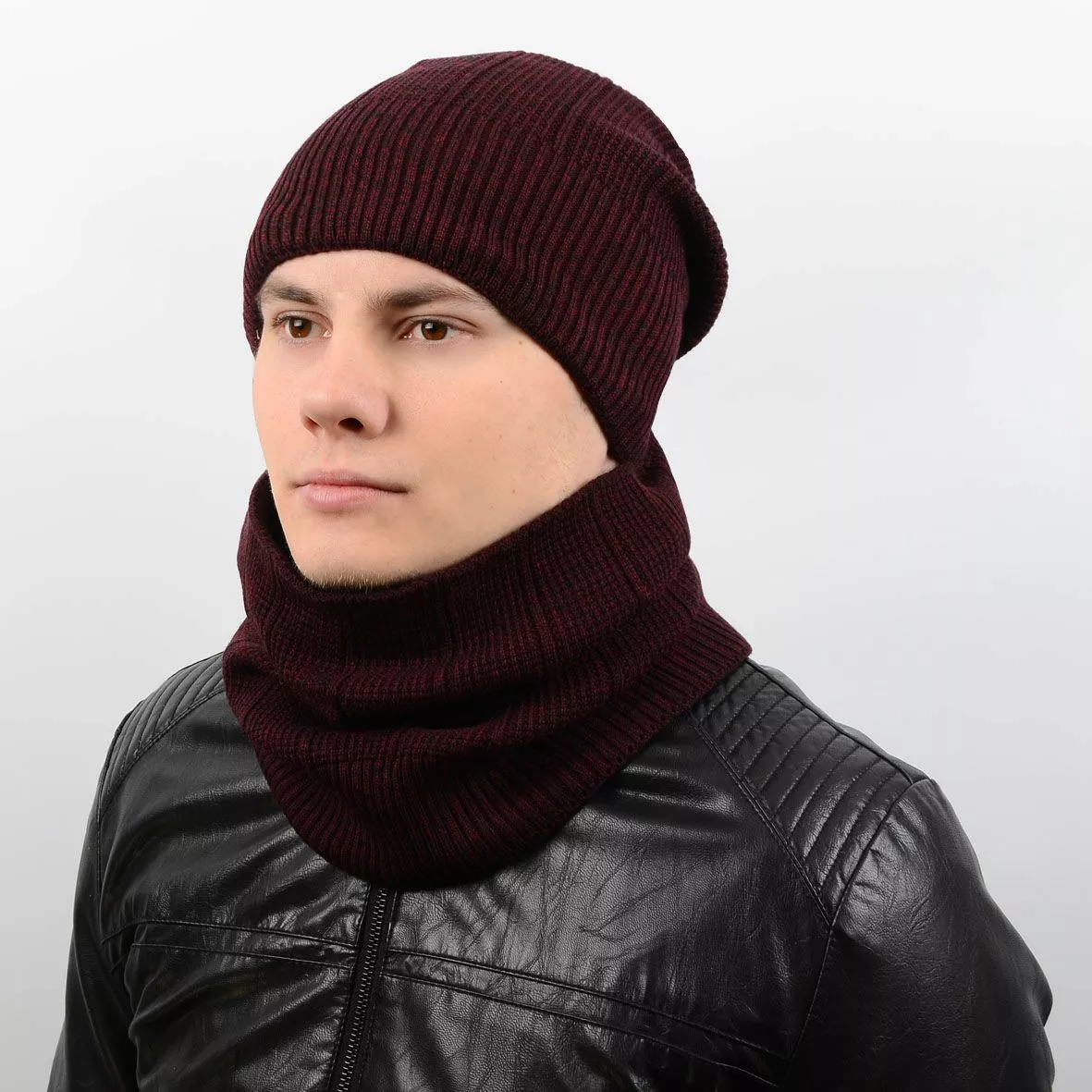 Стильный мужской набор - состоит из шарфа-хомута и теплой шапки.