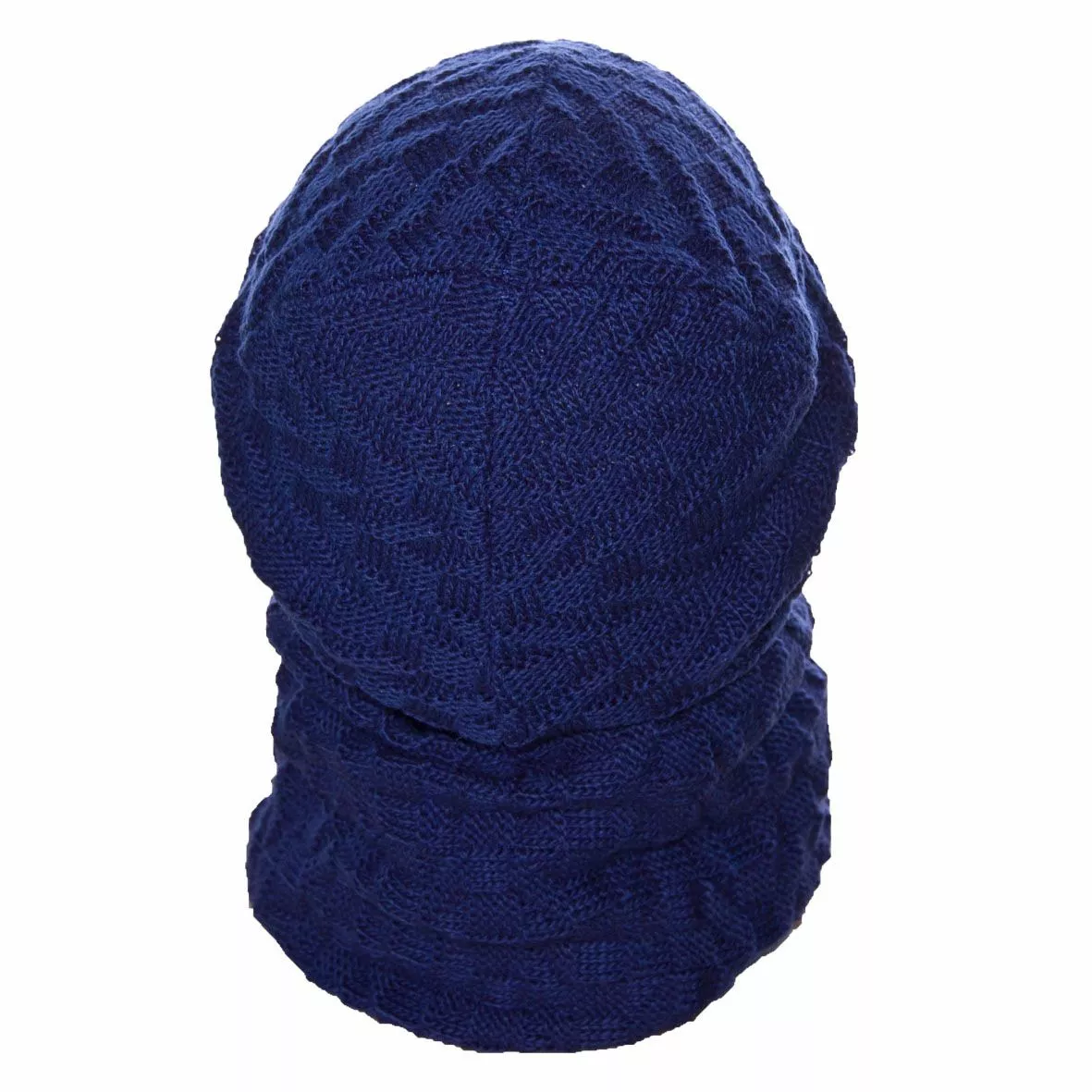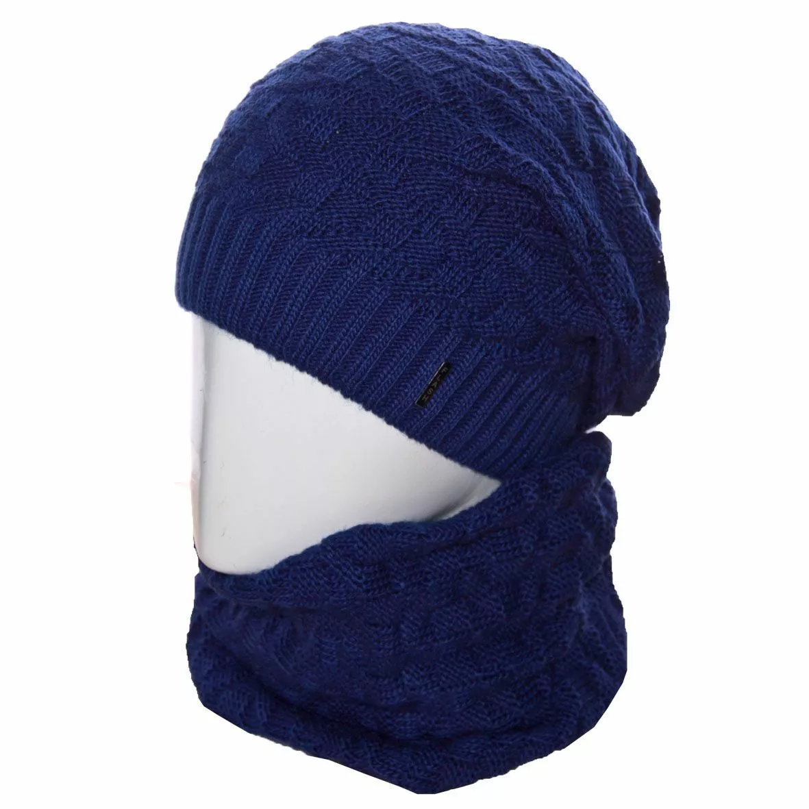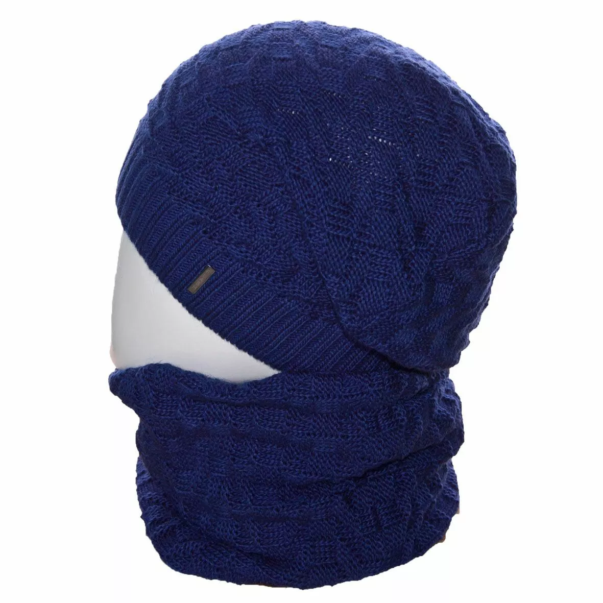 Вязаный однотонный мужской комплект состоит из удлиненной шапки, с