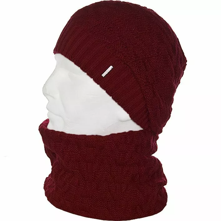 Вязаный однотонный мужской комплект состоит из удлиненной шапки, с