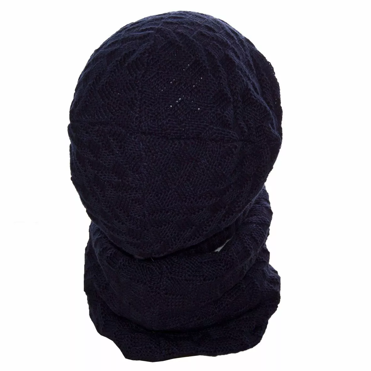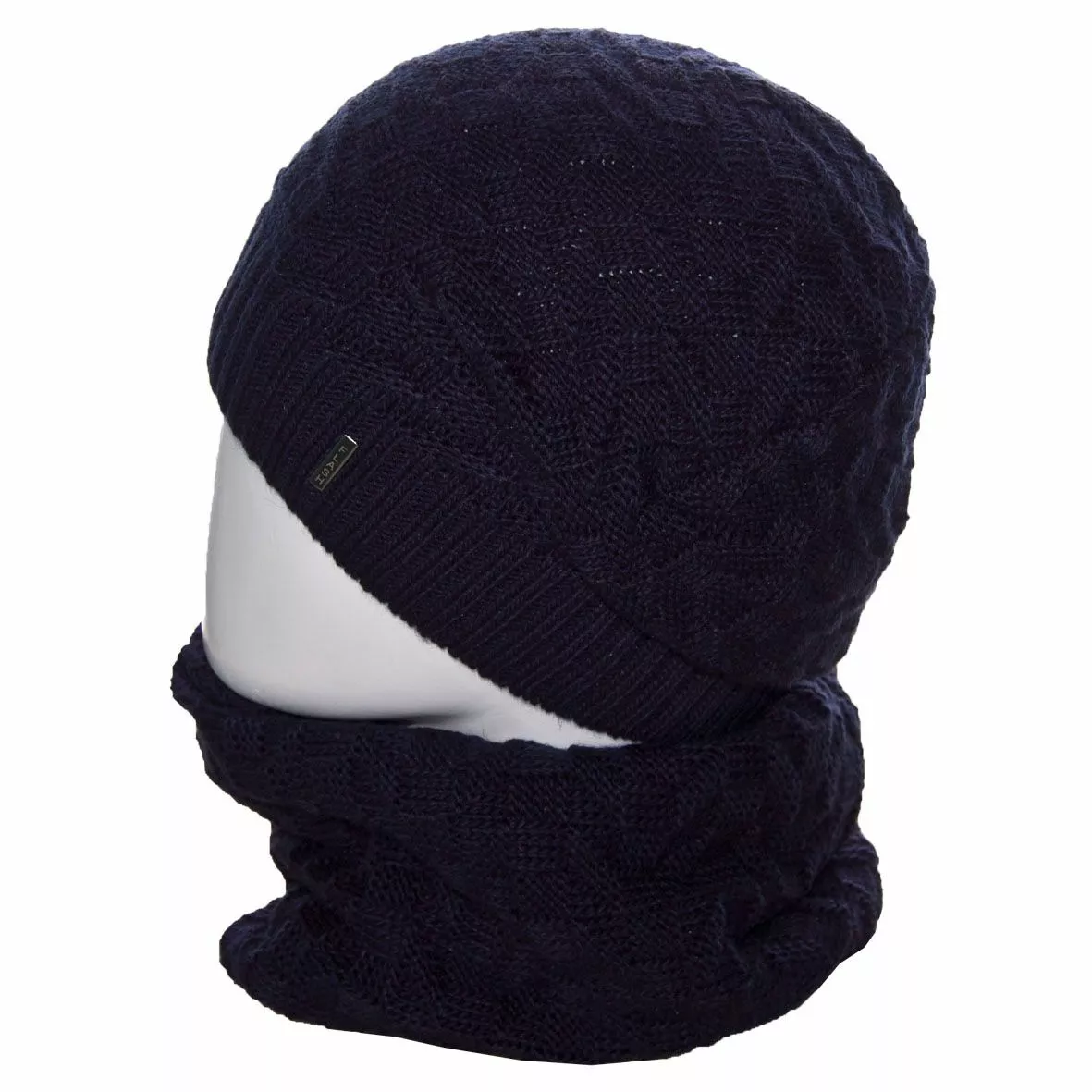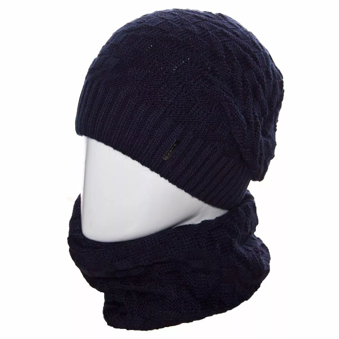 Вязаный однотонный мужской комплект состоит из удлиненной шапки, с