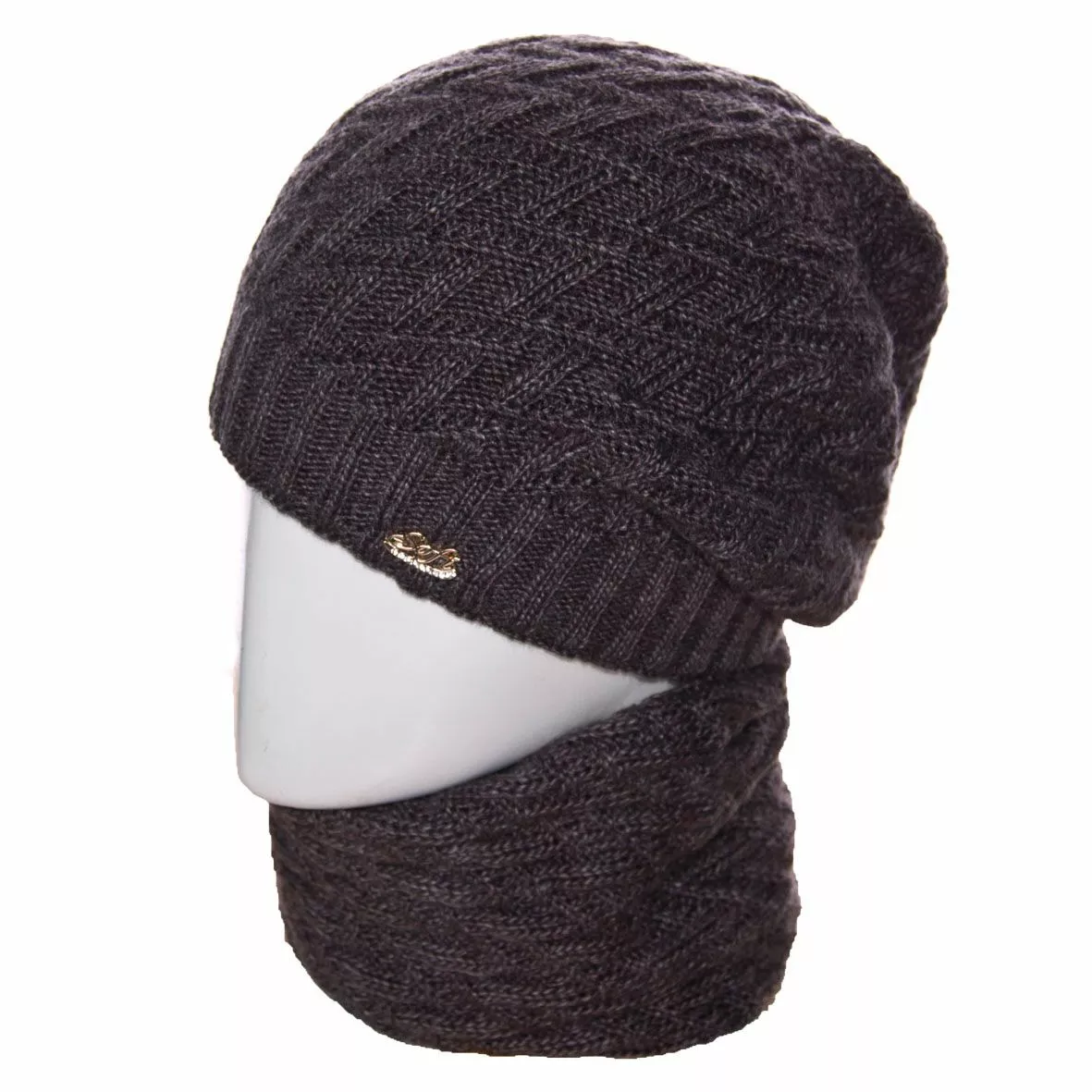 так и женщинам постарше. Модная шапка-чулок и хомут-труба выполнены
