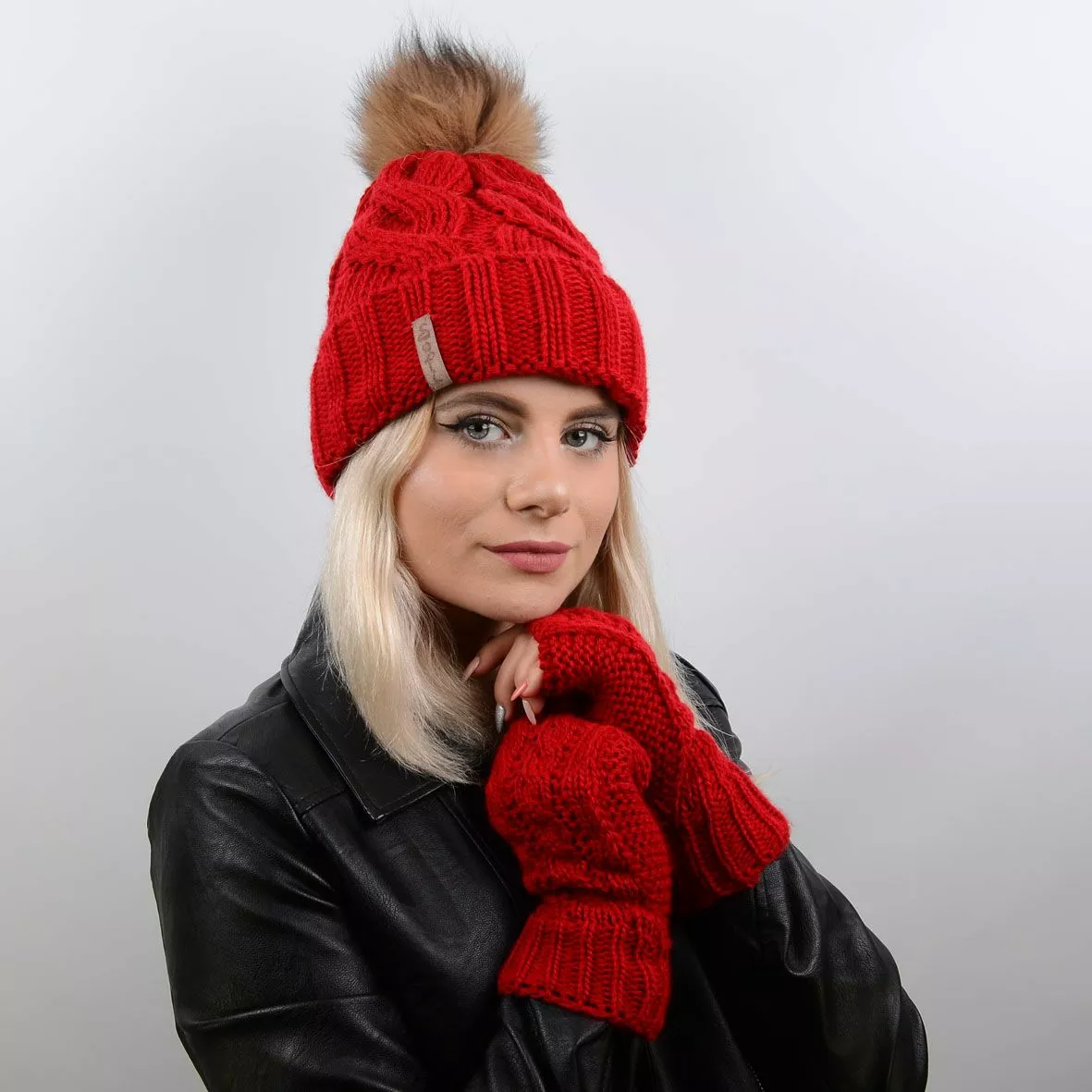 шапки служит натуральный меховой помпон и оригинальная кожаная