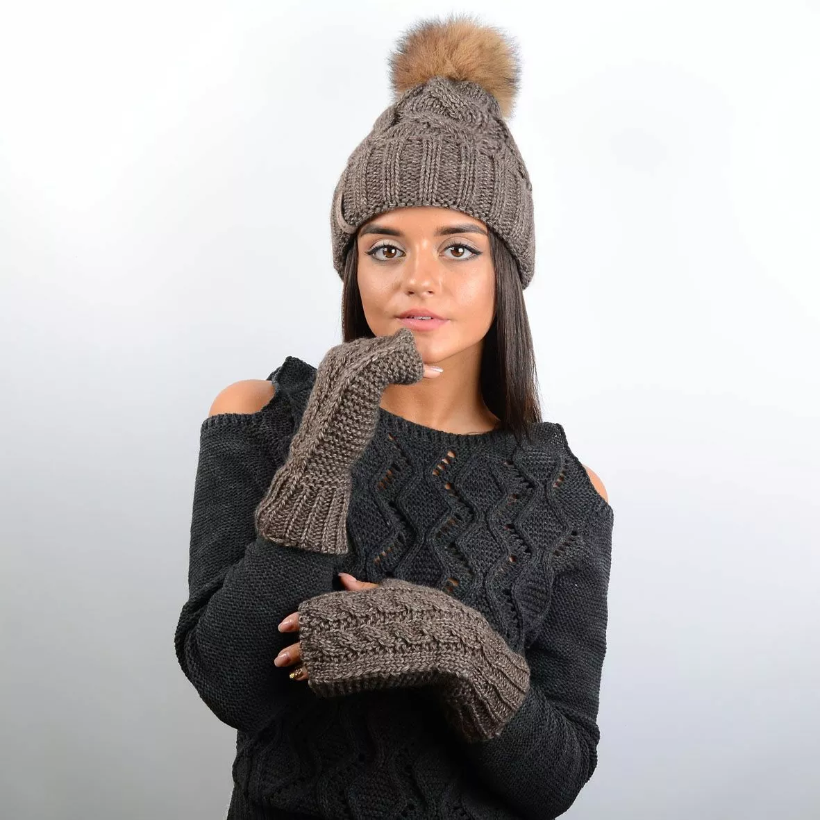 Женский зимний вязаный комплект, в состав которого входит теплая