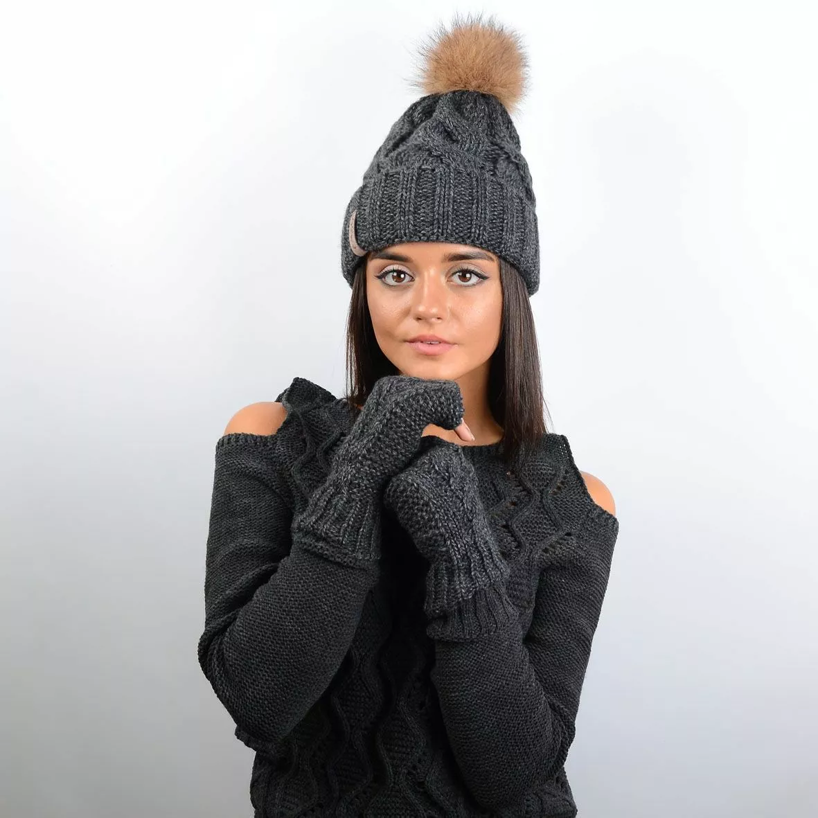 шапки служит натуральный меховой помпон и оригинальная кожаная