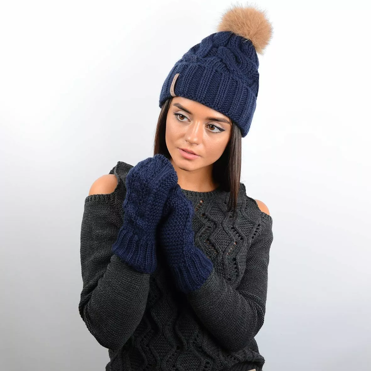 шапки служит натуральный меховой помпон и оригинальная кожаная