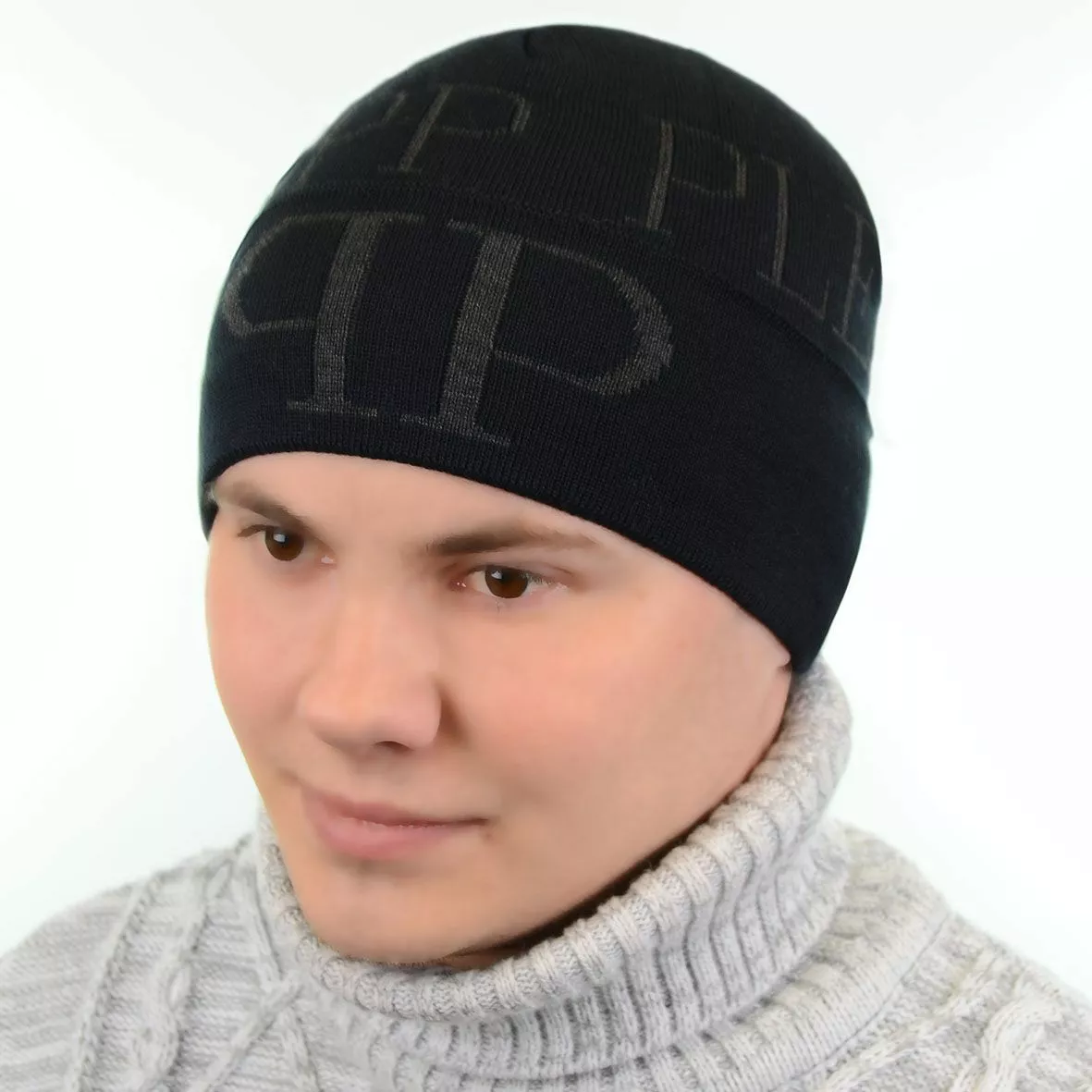 Мужская зимняя шапка. Аксессуары выполнены из качественной пряжи с