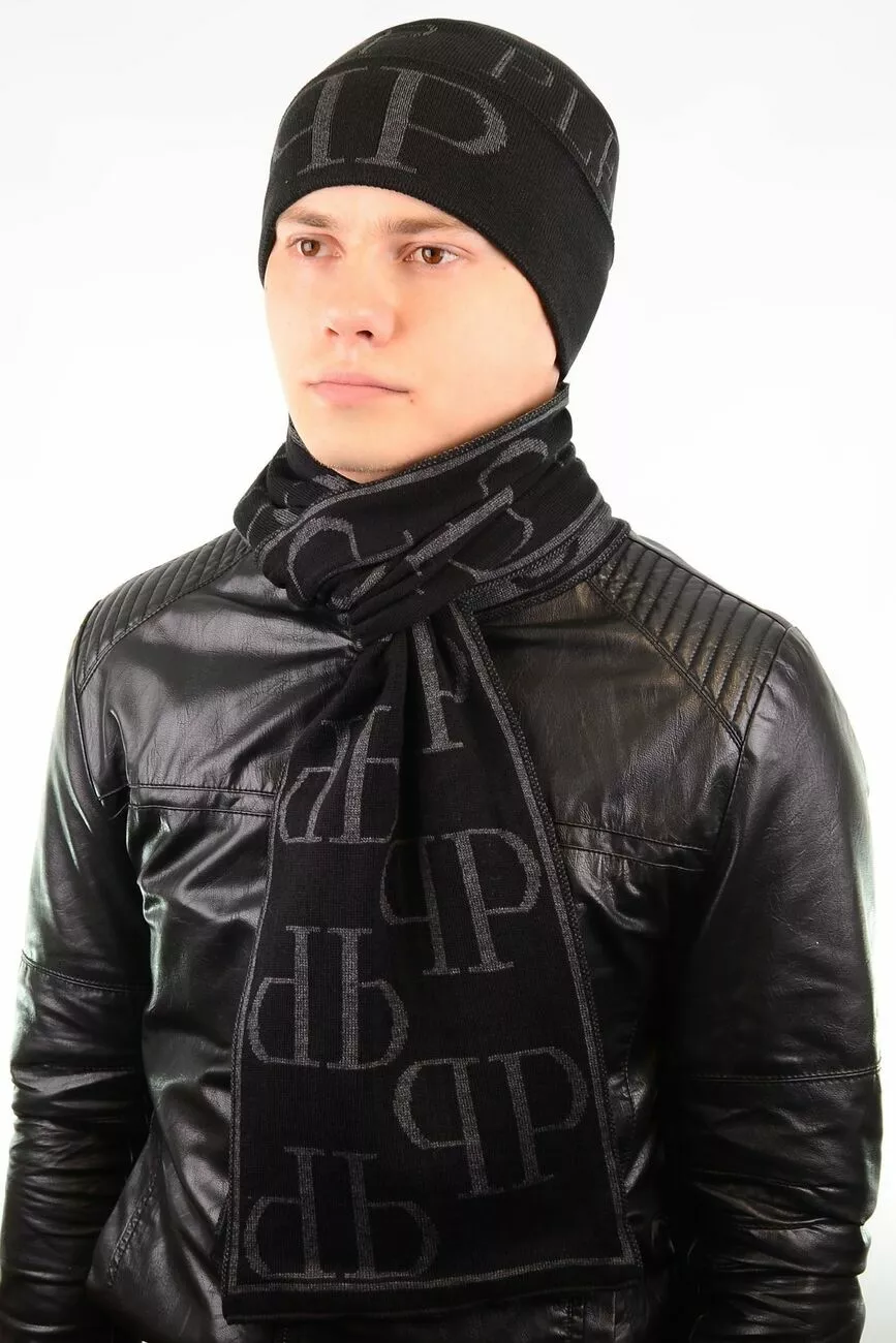 Однотонный мужской набор - состоит из шарфа и стильной шапки.