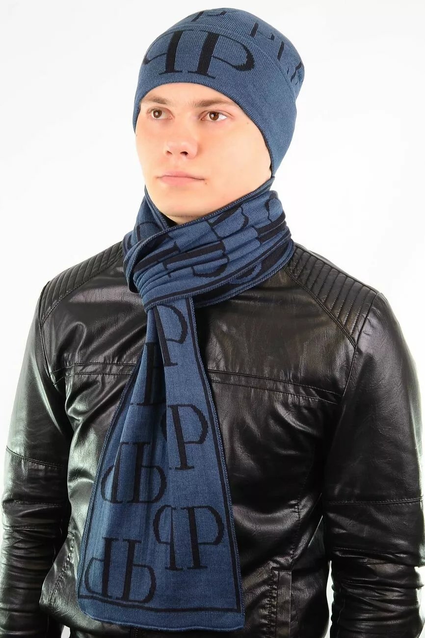 Однотонный мужской набор - состоит из шарфа и стильной шапки.