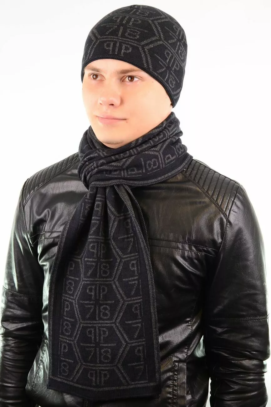 Однотонный мужской набор - состоит из шарфа и стильной шапки.