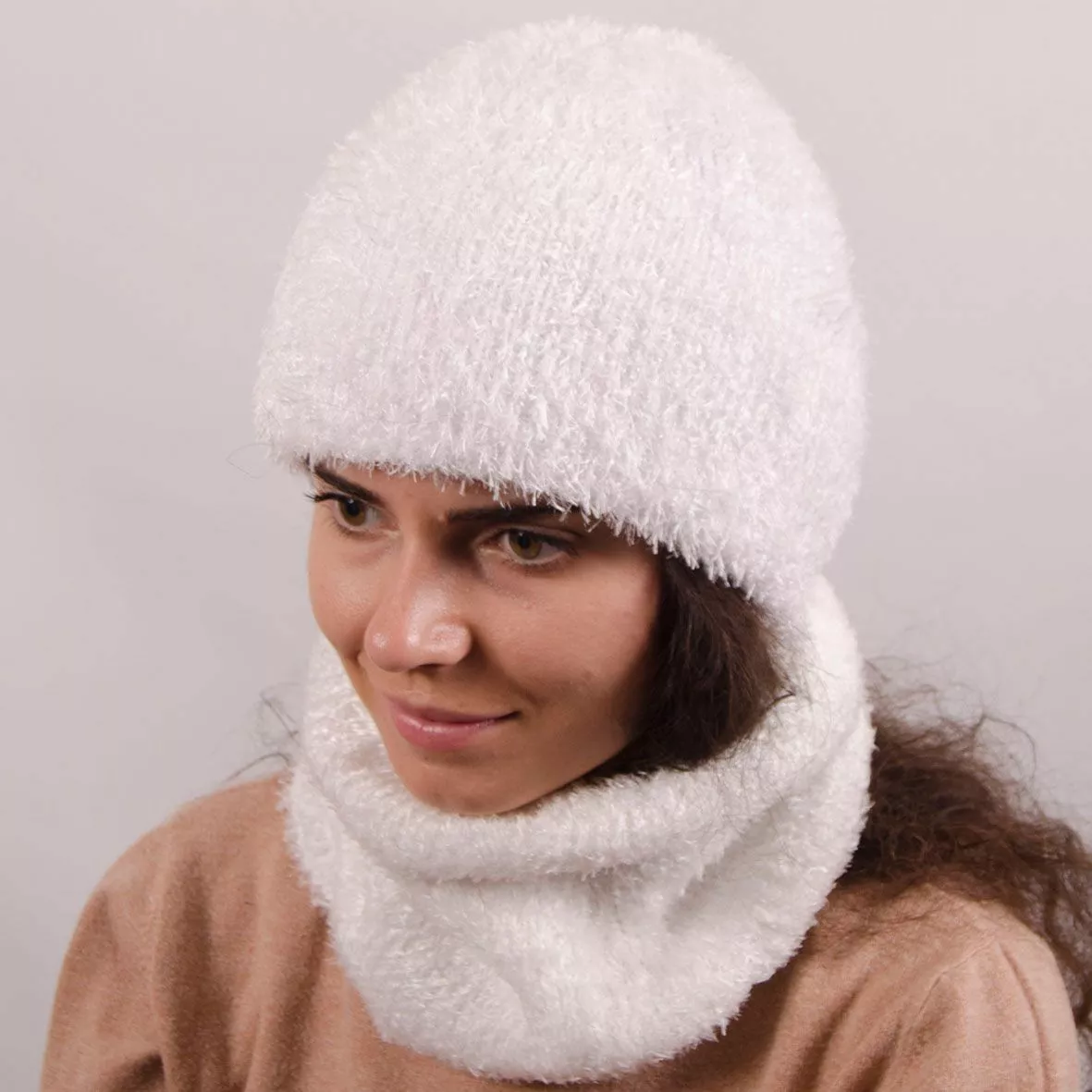 Однотонный женский набор - состоит из хомута и стильной шапки.